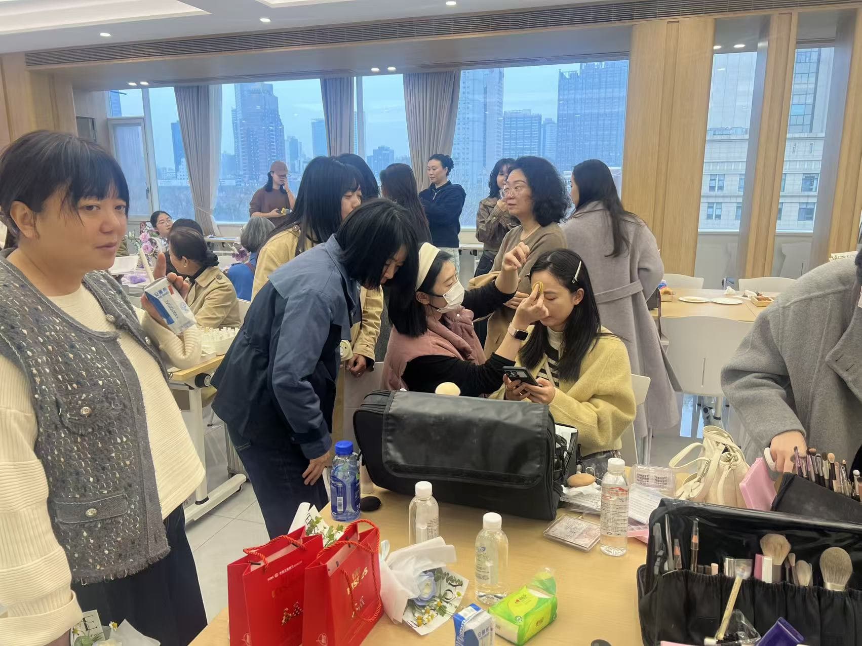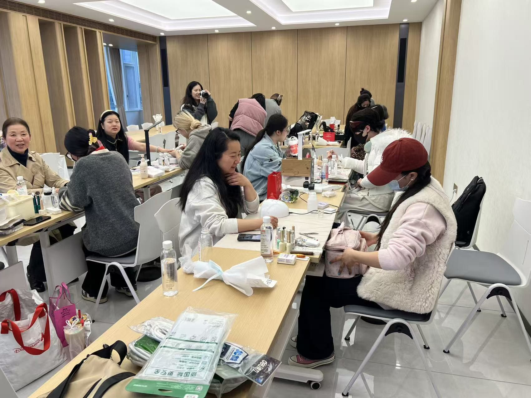 活动现场,同学们凭借扎实的专业功底和饱满的热情,为到场的女性同志提供了细致入微的美甲、美妆服务。从精心调制甲油颜色、描绘精美图案,到根据个人气质设计精致妆容,同学们一丝不苟,将课堂上学到的理论知识和技术手法娴熟地运用于实践操作中。她们的专业表现赢得了现场参与者的一致好评,不仅为大家带来了美丽与自信,更传递了节日的温暖与关怀。