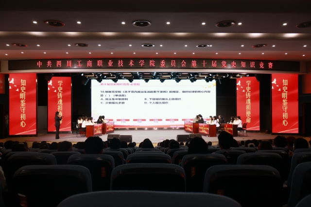 金秋十月,红色精神薪火相传。10月29日,以“知史明鉴守初心,学史铸魂担使命”为主题的第十届党史知识竞赛决赛在多功能二厅圆满落幕。党委常委、纪委书记向晓岚,党委常委、副院长邱春丽、丁思勇,党委常委、党委组织部部长李文晋,各二级学院党总支书记、学生党支部书记,以及第47期入党积极分子与党员发展对象培训学员共计201人现场观摩比赛。