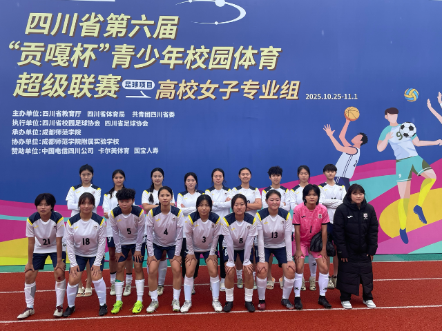 10月25日至11月1日,四川省第六届“贡嘎杯”青少年校园体育超级联赛高校足球项目在成都师范学院火热开赛。我院女子足球队凭借出色发挥,以小组第一的优异成绩成功出线,顺利晋级总决赛。