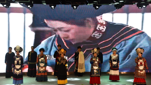 本次晚会共分为三个篇章。第一篇章以“执光·初遇”为主题,展示丰富多彩的民族风情。环境25343班同学带来的合唱《大山》,歌声沉稳有力,如山峦般厚重悠扬,引人入胜;环境25345班的彝族舞蹈《大山回响·达体逐光》热情奔放,将观众带入载歌载舞的民族盛会,尽显浓郁风情。罗桑顿珠同学独唱《瞬》,以空灵嗓音捕捉转瞬即逝的美好,定格时光,令人沉醉。