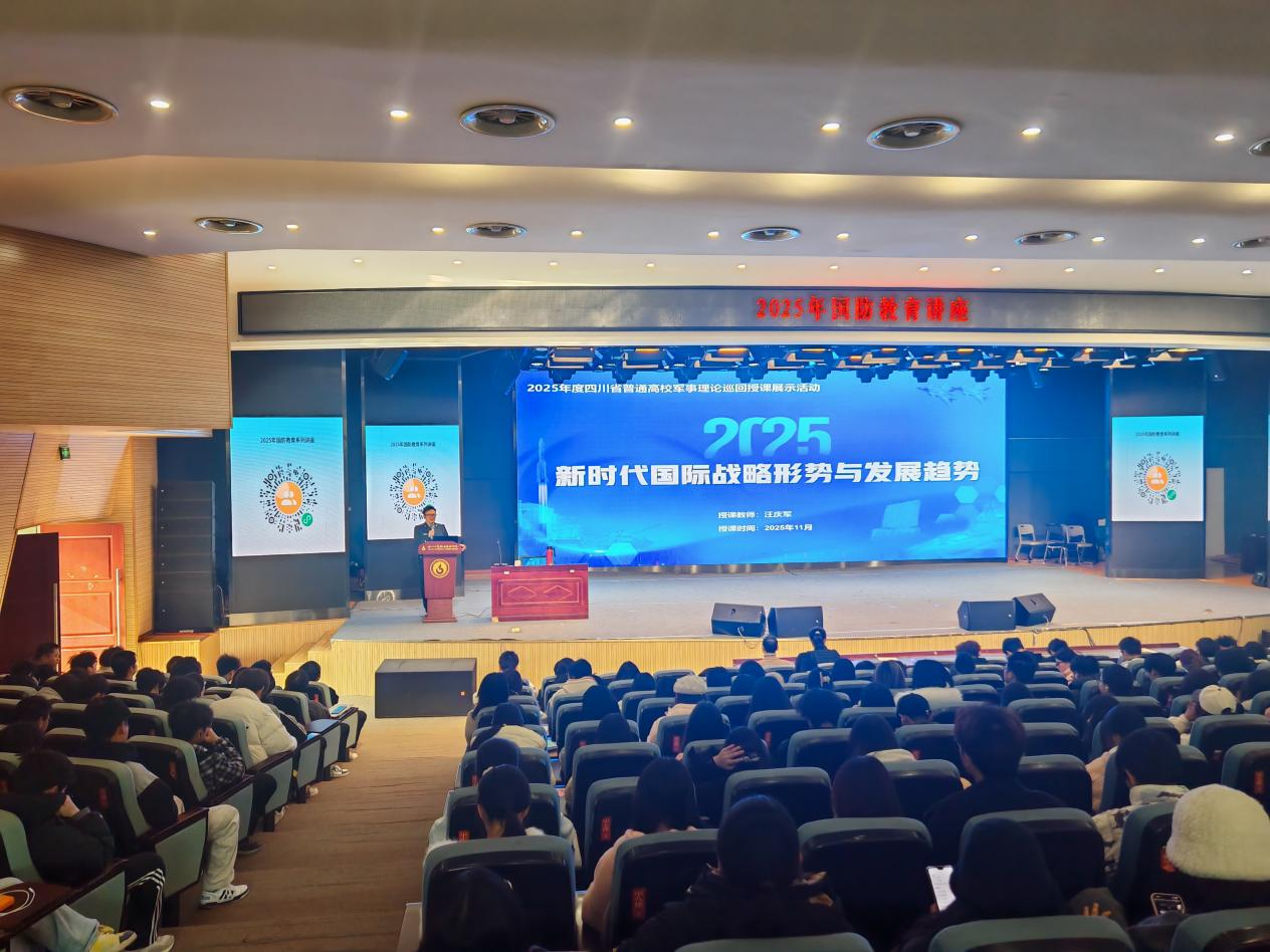 为提升我院国防教育水平,增强师生国家安全意识和军事理论素养,12月2日下午,党委学生工作部举办2025年国防教育活动。活动邀请了四川省学校国防教育专家、中国民用航空飞行学院马克思主义学院汪庆军教授在多功能二厅举办讲座。活动由党委学生工作部副部长王俊芳主持,马克思主义学院、人文社科基础教育学院负责人、教师及学生共400余人参加本次活动。