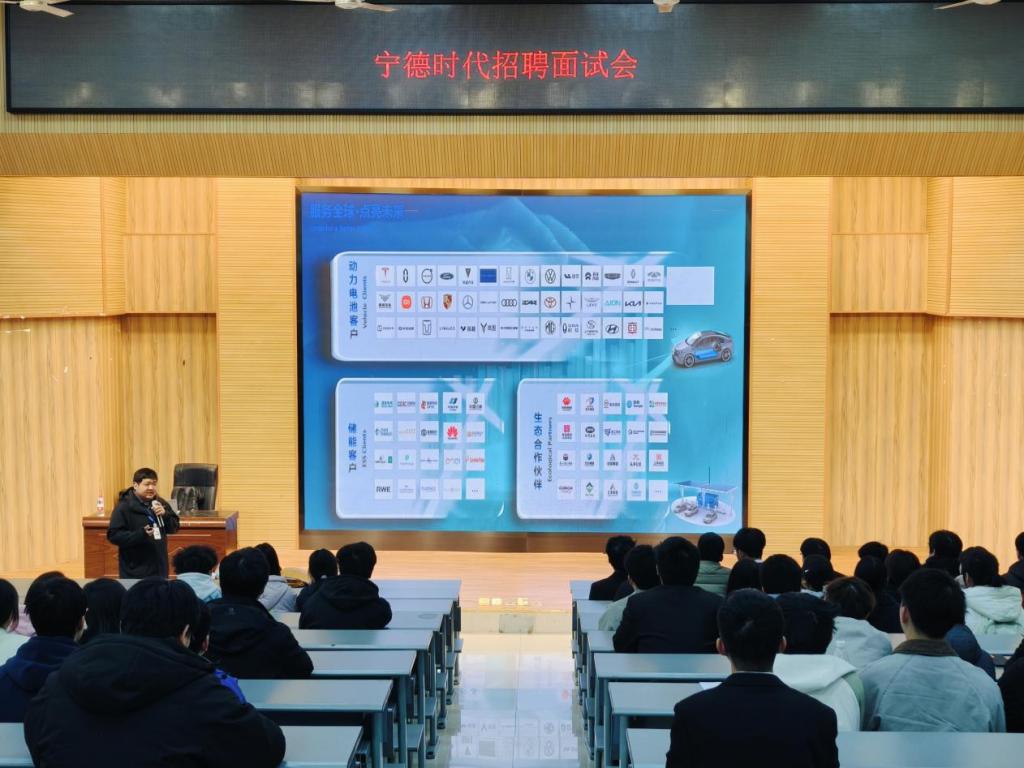 洽谈会后,宁德时代四川基地代表团随即开展校园招聘活动。在招聘宣讲环节,韩禾骞经理详细介绍了宁德时代旗下四川时代、三江时代、新津时代三大子公司的西南地区产能布局情况,以及本次招聘的岗位设置与发展通道。他表示,宁德时代本次招聘面向2026届毕业生,覆盖机械制造、智能控制、新能源汽车技术、材料工程技术等理工科专业,同时开放可外派欧洲基地的海外储备技术员岗位。宣讲结束后,超百名毕业生现场投递简历并参加面试,同学们对新能源行业的发展前景和企业人才培养体系表现出浓厚兴趣。