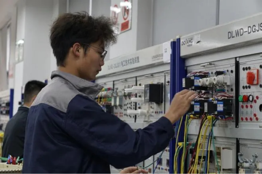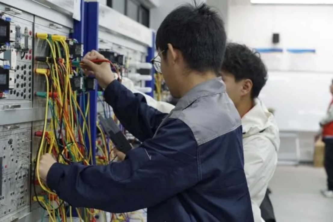 4月12日上午电工技能大赛中,参赛者在实操过程中沉着冷静、操作娴熟,将课本知识转化为精准的电气控制方案,展现了智能制造学院同学们对电工类专业知识的扎实功底。