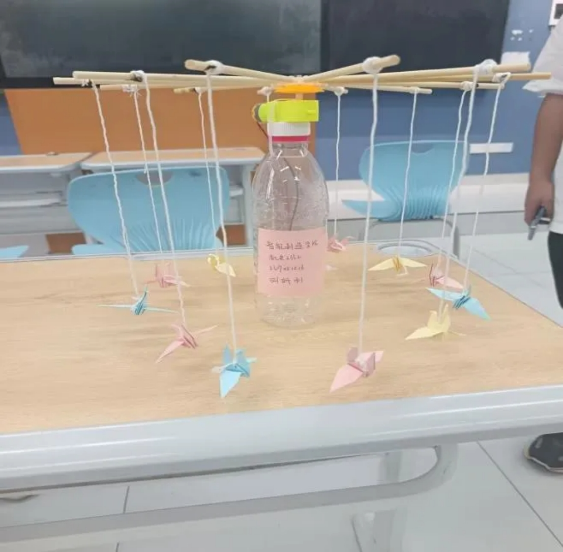 电子DIY项目中涌现出“电动旋转千纸鹤”“简易小音箱”“自制集成探索装置”“带屏显示设备”“简易音频播放系统”等多件创新作品。这不仅体现跨学科融合思维,更彰显智能制造领域“艺工结合”的新趋势。