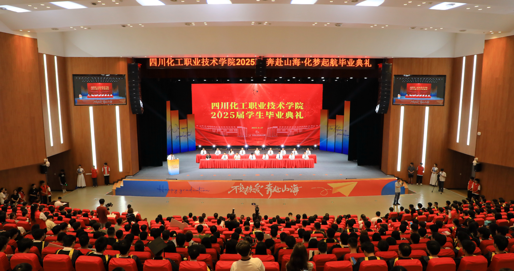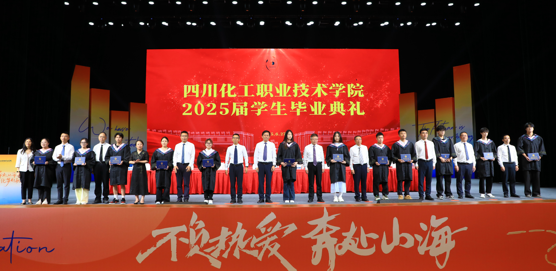 当时间的指针划过齿轮,悄然指向2025年的盛夏,又一届风华正茂的化院学子,在母校深情的目光中,迎来了专属于你们的加冕时刻。6月27日,学校2025届学生毕业典礼在博雅礼堂举行。581名毕业生齐聚四川化院,3775名毕业生相聚云端,共同唱响夏日骊歌,追梦新的旅程。全体校领导和校友代表全国劳模姜国强、各职能部门、二级学院负责人,全体毕业班辅导员参加典礼。典礼由学校党委委员、副院长谢光杰主持。