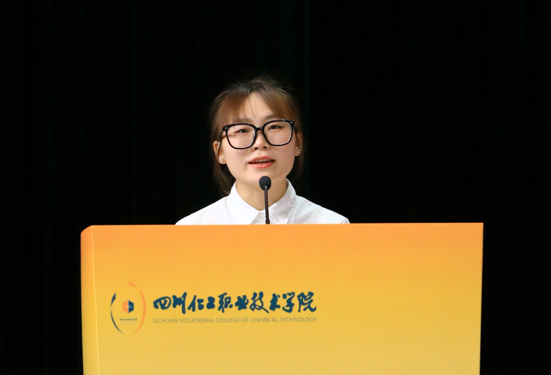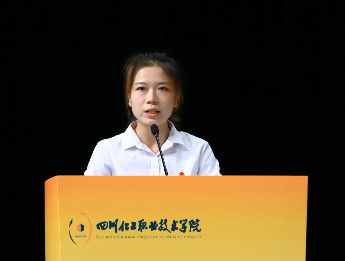 机械工程学院汽修2331班汪雨婷作为在校生代表发言,祝福学长学姐们在征途中破浪前行,永葆热爱,奔赴山海。