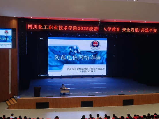 校园安全教育现场播放了“开学第一课”校园安全宣传视频,形象生动地普及了安全知识。纳溪区公安分局反恐特警大队指导员兰江讲授《公民预防恐怖活动行为指引》,增强学生的防恐意识。纳溪区公安分局东升派出所社区民警罗丹聚焦《防范电信网络诈骗》,结合真实案例,提醒同学们警惕诈骗陷阱,保护好个人信息与财产安全。
