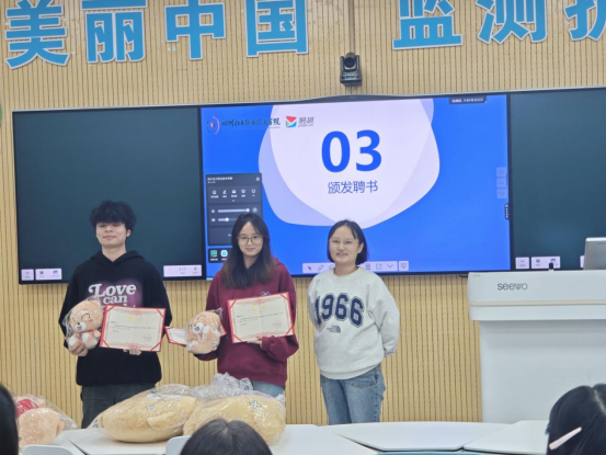 在随后的仪式上,陈善娜老师为站长和干事们颁发了聘书。这不仅仅是一纸证书,更是一份沉甸甸的责任与期望。同时,大会也为第十届易班学生工作站的“优秀干事”们颁发了荣誉证书,感谢他们过往的卓越贡献。