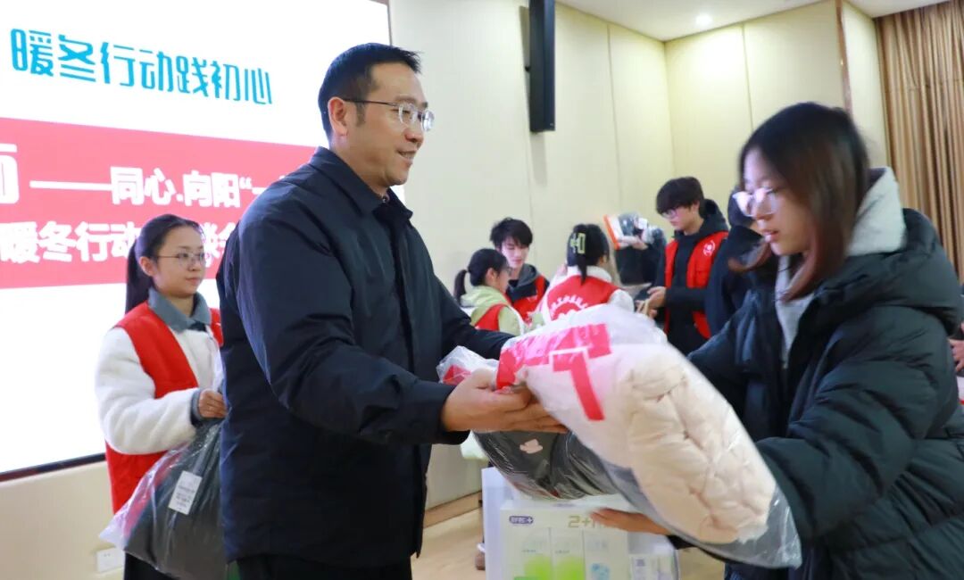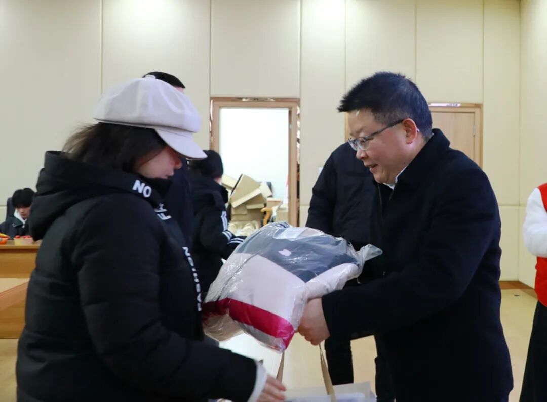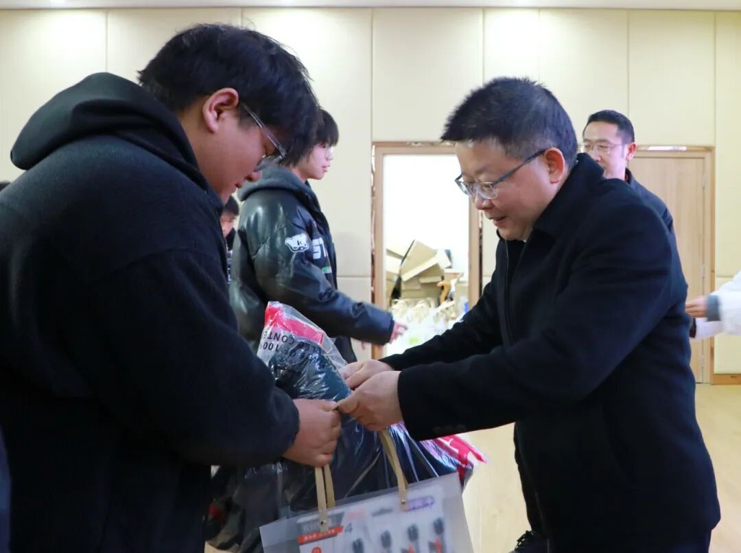 最后,与会领导为困难学生代表现场发放了羽绒服、生活用品等暖冬物资,让同学们在寒冬中深切感受到了学校浓浓的关怀和暖意。