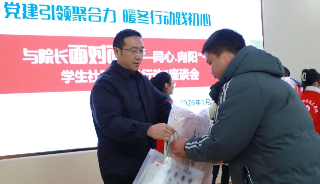 本次活动,不仅为困难学生送去了物质上的帮扶,更是精神上的滋养与力量的传递,是学校“一站式”学生社区建设中践行以生为本理念的生动实践。下一步,学校将以此次座谈会为契机,持续深化学生资助工作,用爱心驱散严寒,用关怀助力成长,为每一位困境学生的追梦之路保驾护航,让同学们带着这份温暖与期许,勇敢逐光、向阳而行,在青春的赛道上奋力奔跑。