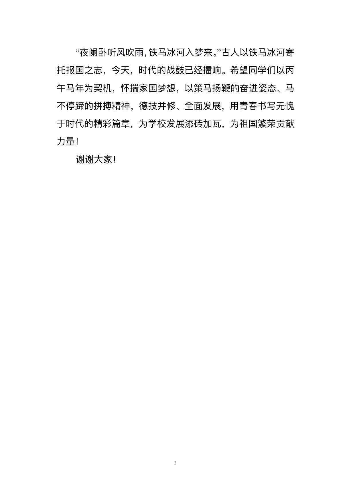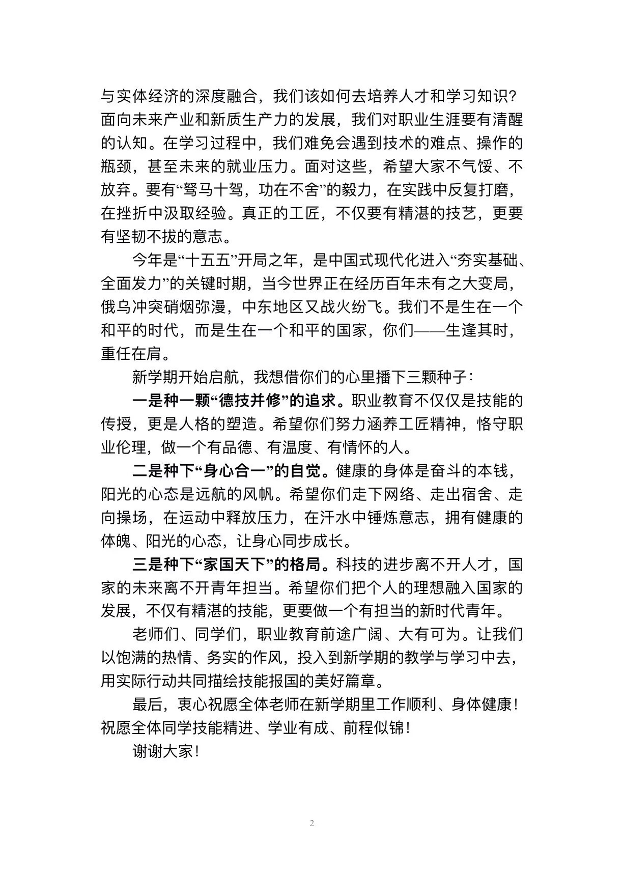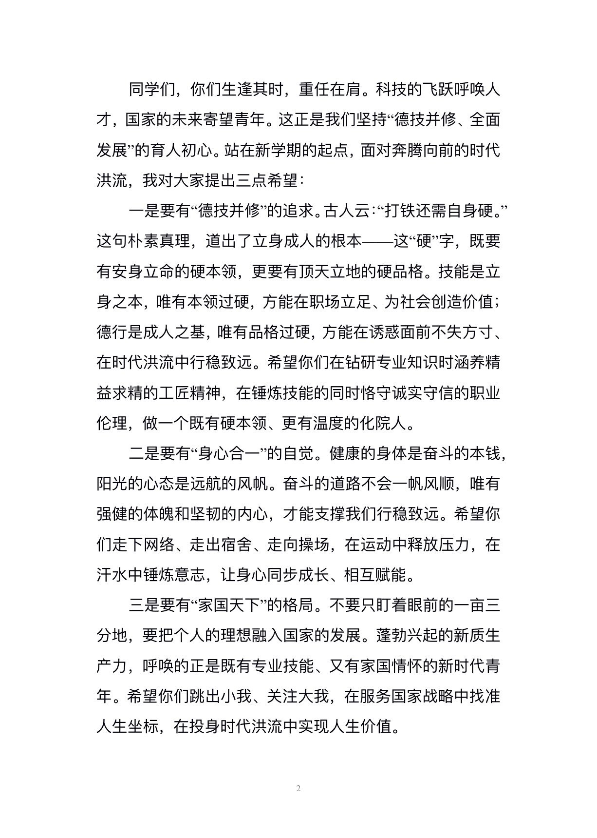 邓华云代表学校向全体师生致以最诚挚的新春问候和最美好的新年祝福,希望全体同学在新的一年拥有“一马当先”的锐气,在学习专业技能的道路上勇立潮头,敢于争先,勇于突破;拥有“快马加鞭”的勤勉,主动适应行业发展新形势、新要求,以勤学长本领、以实干破难题,用汗水浇灌梦想,练就一身过硬的本领;拥有“马不停蹄”的韧劲,在实践中反复打磨、在挫折中汲取经验、在坚持中收获成长。结合当前国内外发展形势,邓华云寄语全体学生要肩负使命,在新学期种下一颗“德技并修”的追求之种,努力涵养工匠精神,恪守职业伦理,做一个有品德、有温度、有情怀的人;种下“身心合一”的自觉之种,拥有健康的体魄、阳光的心态,让身心同步成长;种下“家国天下”的格局之种,把个人的理想融入国家的发展,做一个有担当的新时代青年。