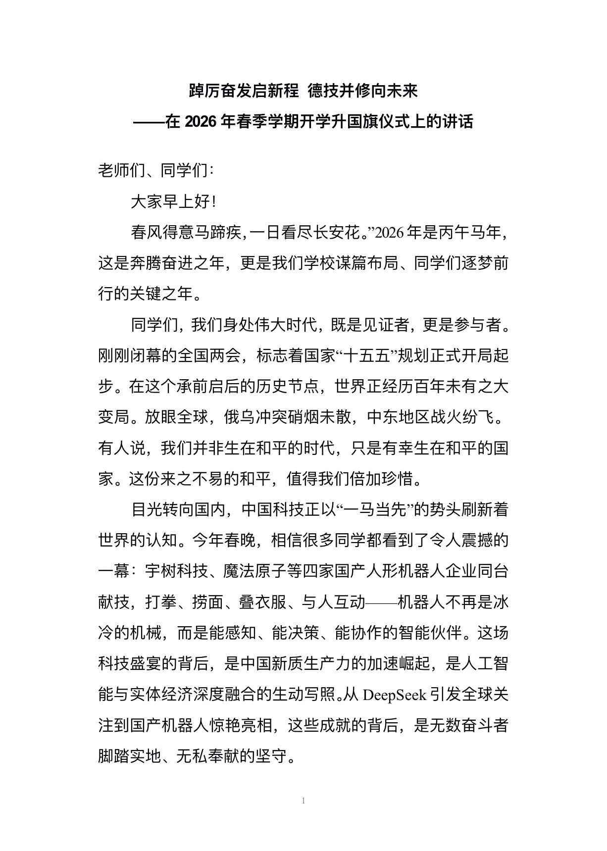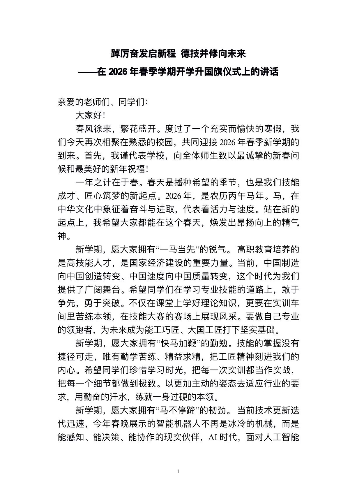 踔厉奋发启新程 德技并修向未来 | 学校举行2026年春季学期开学升旗仪式