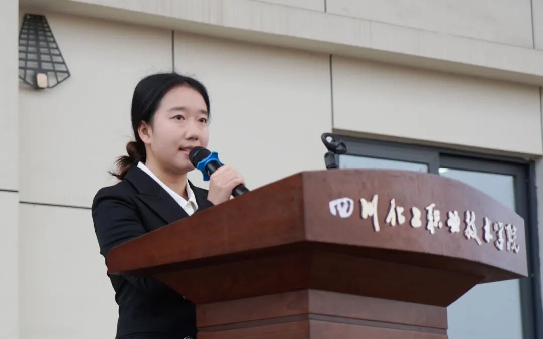 仪式上,优秀在校生代表分享了假期实践感悟,传递青春正能量。应用化工学院北方化工2431班肖隆天宇讲述了自己寒假期间深入化工企业开展调研的实践经历,结合所见所闻所感,号召全体同学秉持“格物致知,知行合一”的理念,潜心钻研专业知识,刻苦练就过硬本领,主动担当化院学子的时代使命。川酒学院现代农业2431班赵雪伊分享了走进夹江县牌坊社区托管班开展志愿服务的暖心历程,呼吁同学们将实践中的收获与成长,融入日常学习生活的每一个细节,脚踏实地、奋勇争先,让青春在奉献中绽放光彩,在奋斗中书写华章。