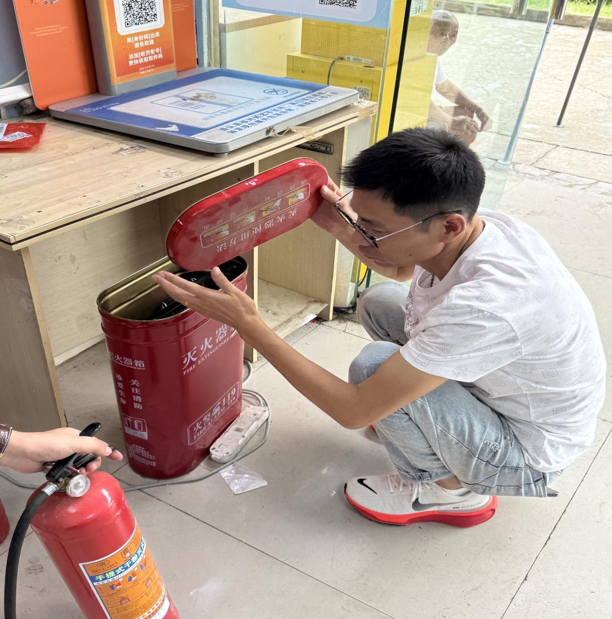图二 菜鸟驿站安全大检查 在在建项目工地,检查组重点检查施工围挡、安全警示标识设置,以及脚手架、临时用电、消防设施等安全管理情况,要求施工单位严格落实假期值班制度,加强施工现场安全巡查,严禁违规施工,同时做好工地周边安全防护,防范施工区域对校园师生造成安全影响;针对检查中发现的安全隐患,现场与施工方沟通,明确整改要求,确保假期施工安全可控。