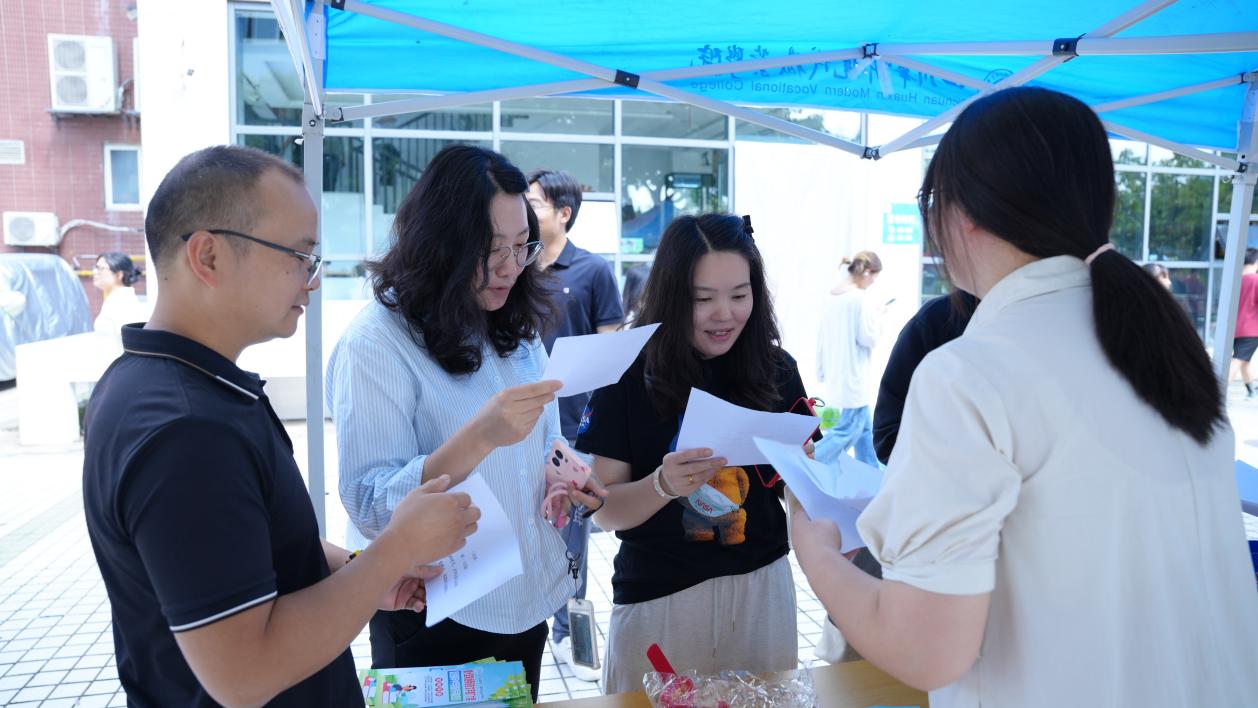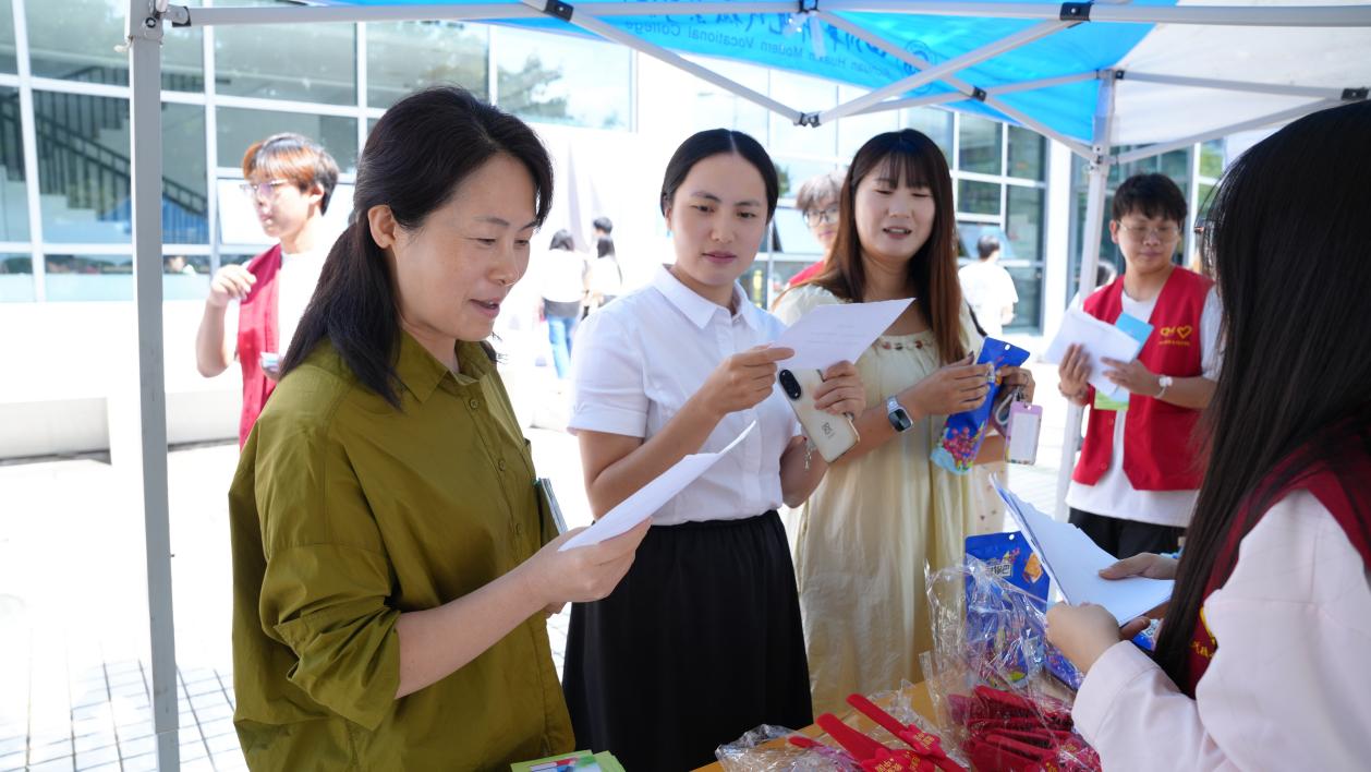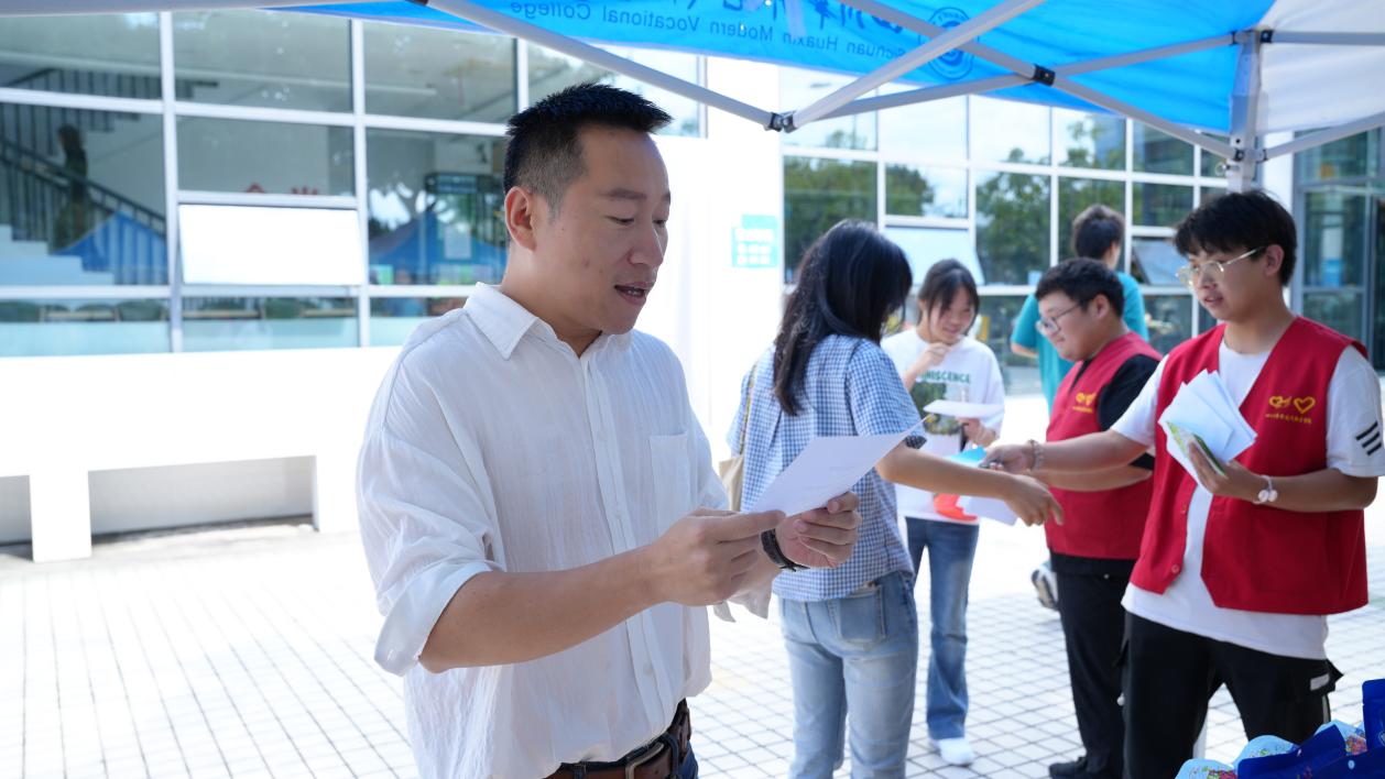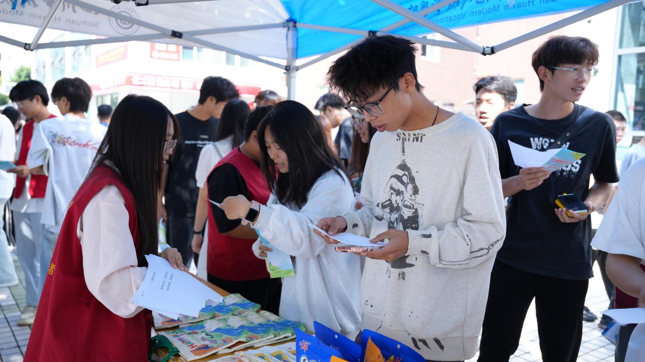 2025年9月24日,四川华新现代职业学院食堂门前热闹非凡,围绕我国第28届推普周主题——“加大国家通用语言文字推广力度 促进铸牢中华民族共同体意识”,教务处(教师发展中心)牵头组织开展以“说好普通话,讲好华新故事”为主题的第28届推广普通话宣传周活动。学院师生积极参与,以言为媒、以趣为介,在融合巴蜀地域文化与职业教育特色的互动中,共赴一场“说好普通话、用好规范字”的语言文化盛宴。