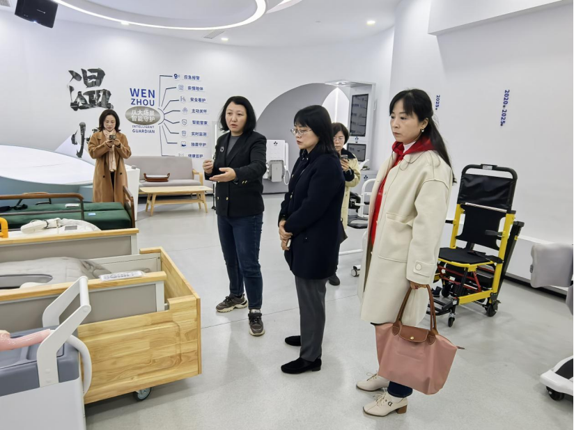 周利平一行先后参观了浙江东方职业技术学院金竹校区“医康养护教”五位一体实训基地、滨海校区智能制造产教融合基地及智慧急救技能实训中心。在AI智慧康养协同创新中心、康养公寓实训基地、东方颐乐学院等场所,双方围绕智慧康养专业群建设、产教融合机制创新、人才培养模式优化等内容进行了深入探讨。实训基地中虚拟仿真急救康复设备的现场演示,生动展现了人工智能与数字技术在医护康养领域的深度融合与实际应用,为华新职院教师提供了宝贵的教学与实践参考。