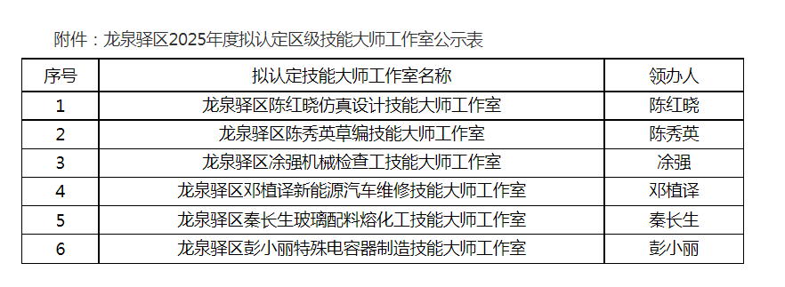 图一 2025年度区级技能大师工作室评审拟认定名单的公示