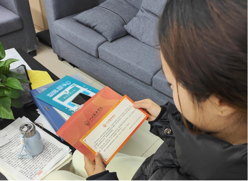 学工部定制专属贺卡,辅导员亲笔书写学生姓名并递交学生手中。学生收到贺卡后感动不已,纷纷表示“感谢学校在寒冬来临之际送来的冬衣补贴及暖心关怀,被学校记挂的感觉,真的很幸福。”