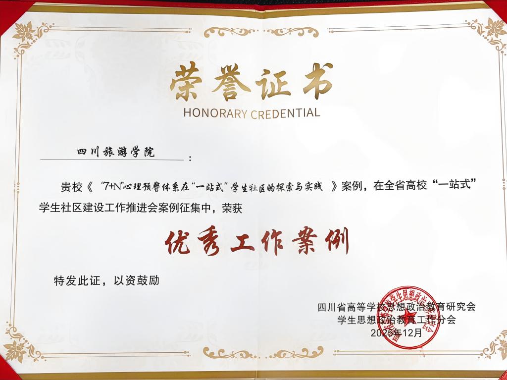 12月26日,全省高校“一站式”学生社区建设工作推进会举行。会上,四川省高等学校思想政治教育研究会学生思想政治教育工作分会公布全省高校“一站式”学生社区建设优秀工作案例评选结果,我校报送的《“7+N”心理预警体系在“一站式”学生社区的探索与实践》案例成功获评“优秀工作案例”。