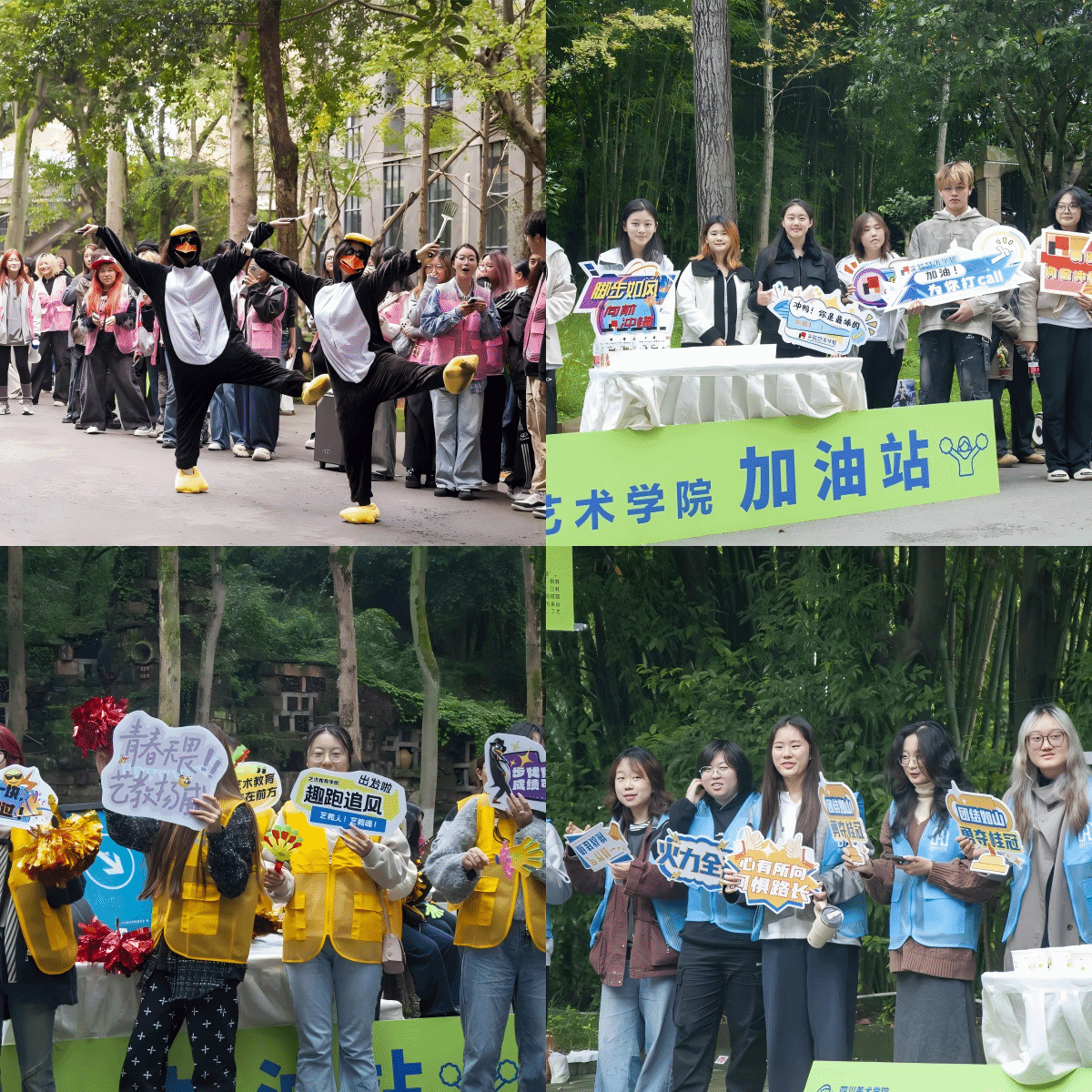 沿途各学院设置的“加油站”与啦啦队表演,营造出嘉年华般的欢乐氛围,成为校园中一道流动的风景线。同时面向全球校友开展“薪火相传”8500步云上跑活动。校友通过“爱川美”小程序参与步数打卡,云点亮所在城市、送上对母校的祝福,以实际行动践行“云跑8500步,共叙川美情”。