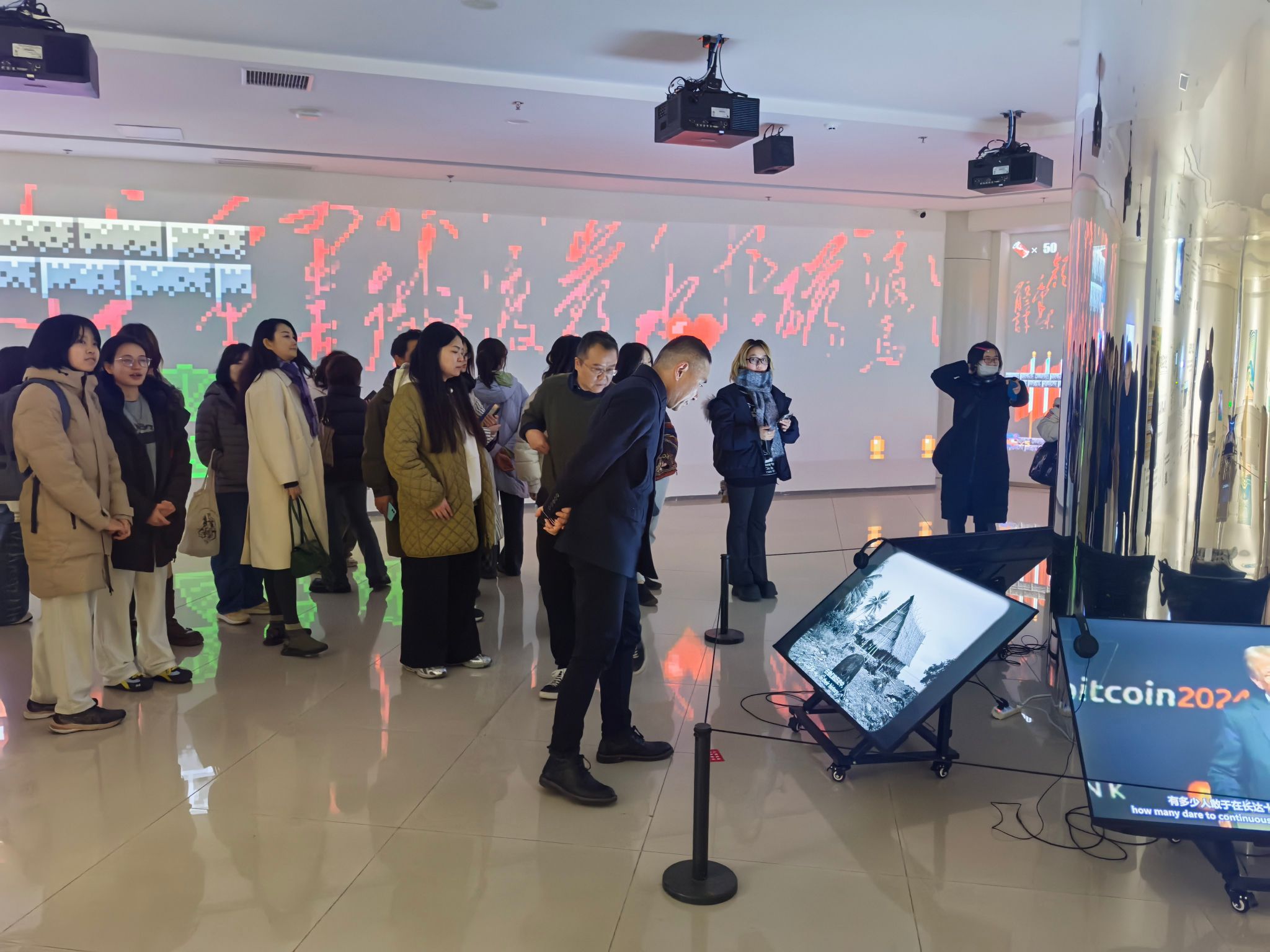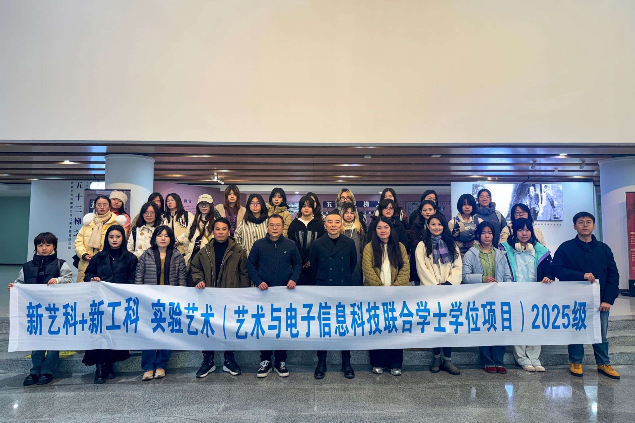 1月16日,实验艺术学院2025级“艺术与电子信息科技”联合学士学位项目学生在焦兴涛院长的带领下,赴黄桷坪校区开展现场教学活动,集体观摩“中国科技艺术小史——第一章 基于电脑的艺术”展览。