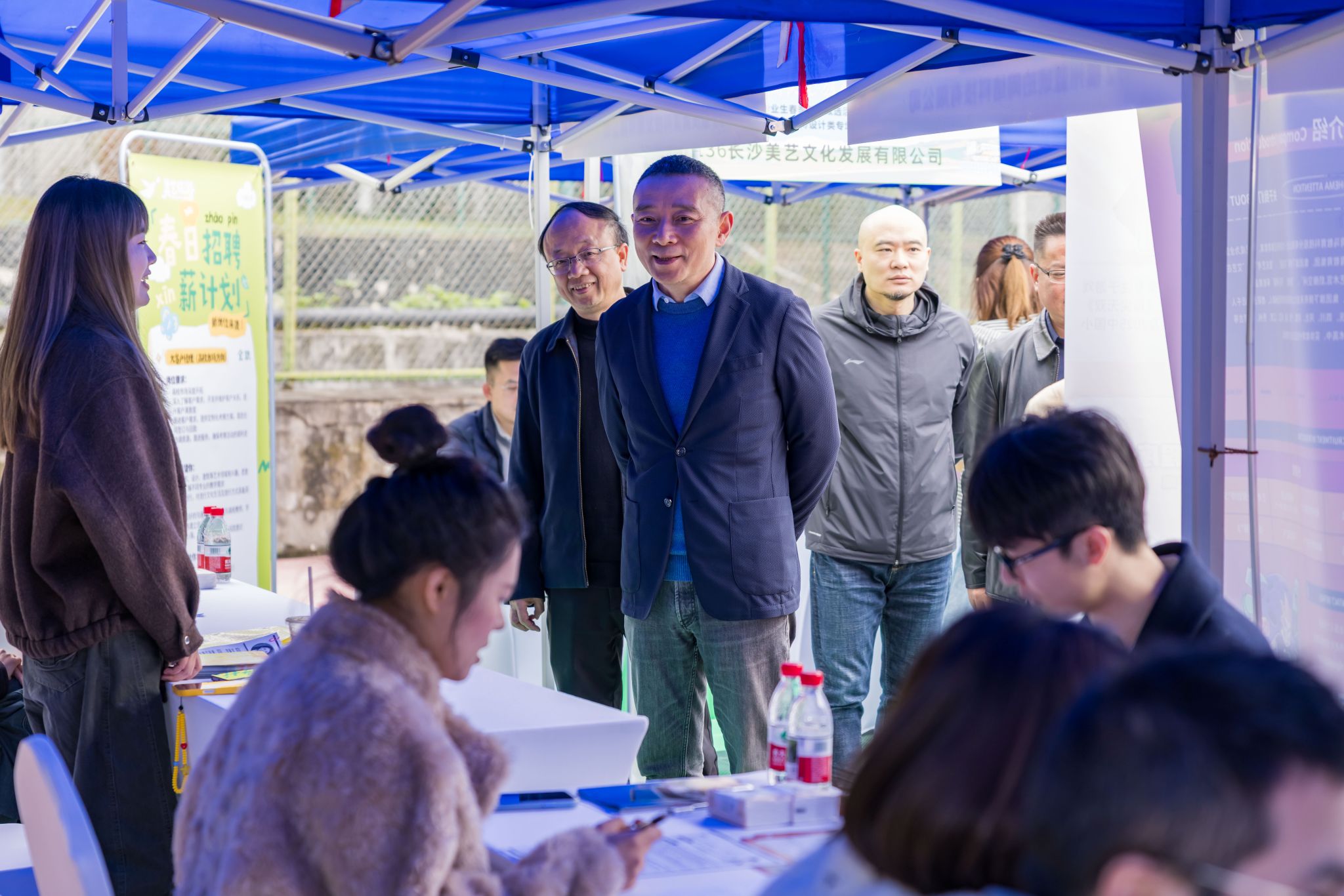 3月25日,由市教委和我校主办的渝快就·创未来—重庆市2026届普通高校毕业生春季就业双选活动暨2027届毕业生实习推介会(美术/设计类专场)在我校虎溪校区断桥广场举行。院长焦兴涛,党委常委、副院长张勇华等领导前往活动现场了解用人单位招聘需求、毕业生求职意向及现场服务保障情况。