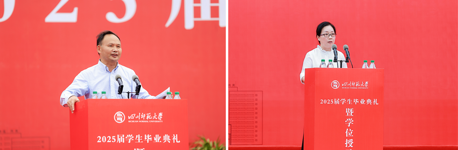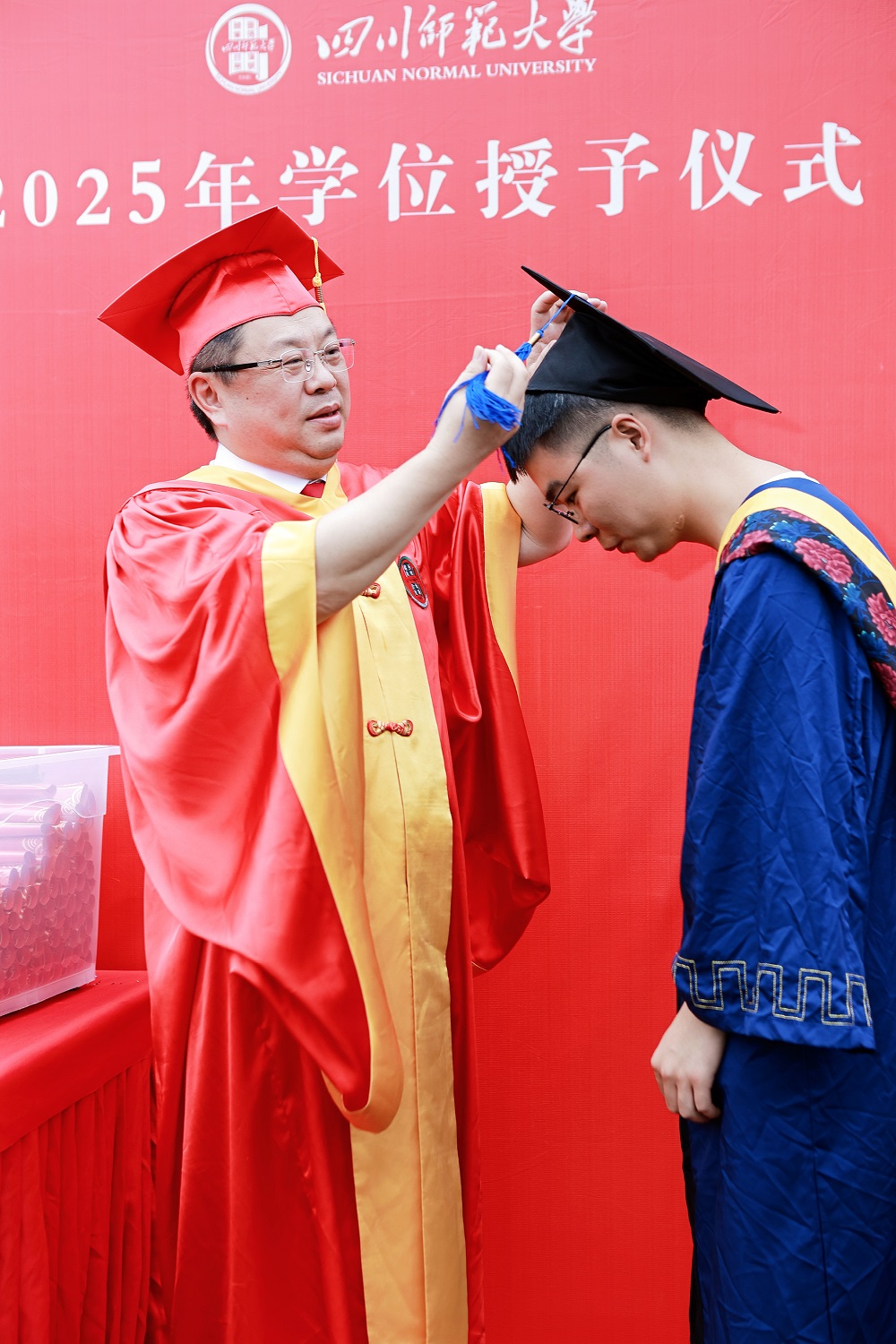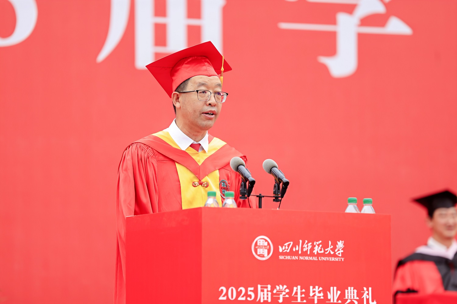 典礼上,郭勇宣读毕业决定和优秀毕业生表彰决定。他充分肯定2025届毕业生在思想道德、学业发展、专业技能等方面取得的优异成绩,展现出新时代川师学子的风采。他勉励受表彰的优秀毕业生珍惜荣誉,戒骄戒躁,继续发扬刻苦钻研、开拓创新的进取精神,以所学所长奉献社会,为母校争光,成就精彩人生;希望全体同学向先进典型学习,坚定理想信念,提升专业能力,强化综合素质,争做堪当民族复兴大任的时代新人。