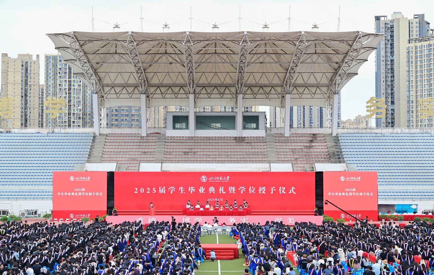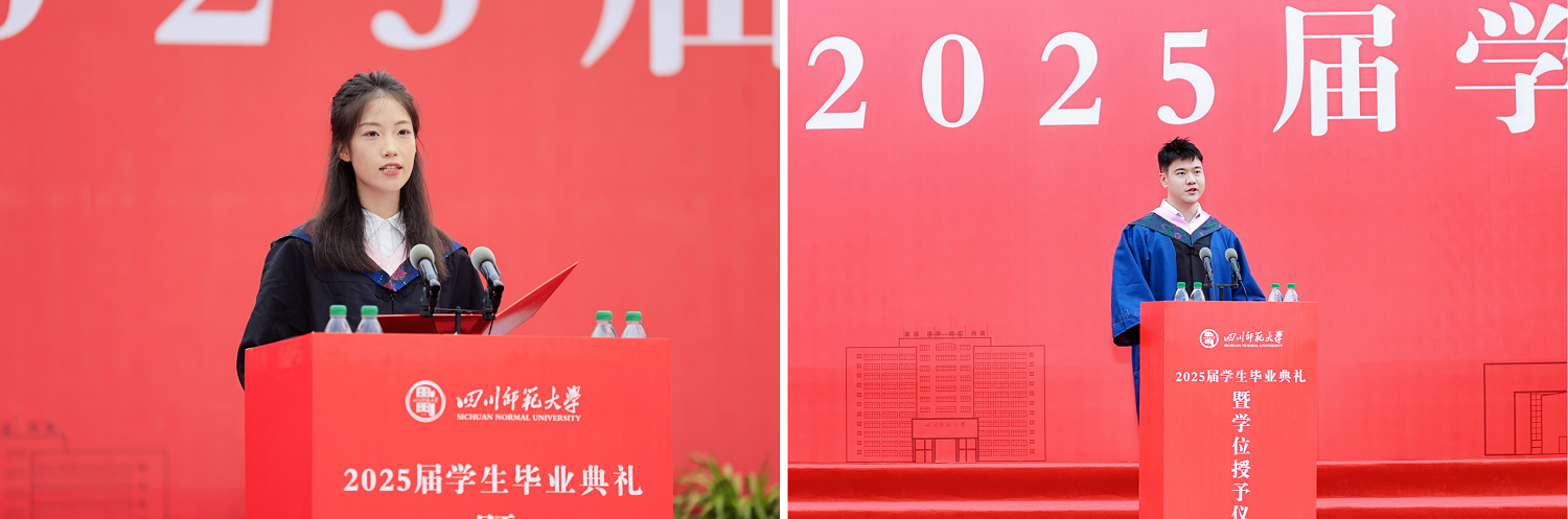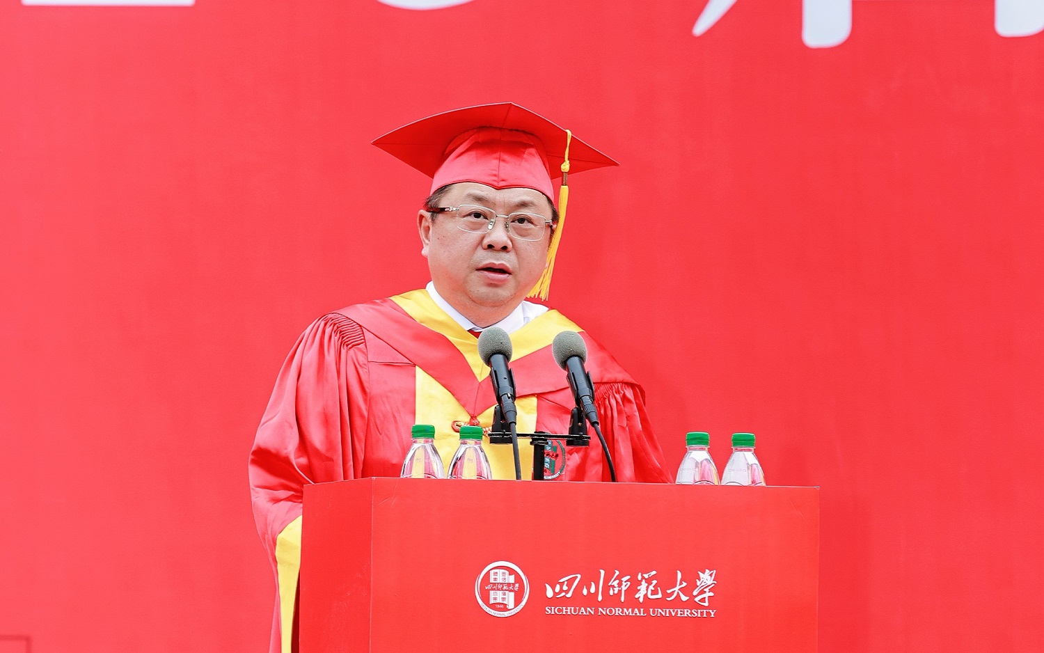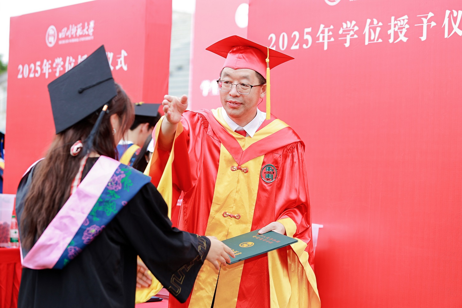 典礼上,郭勇宣读毕业决定和优秀毕业生表彰决定。他充分肯定2025届毕业生在思想道德、学业发展、专业技能等方面取得的优异成绩,展现出新时代川师学子的风采。他勉励受表彰的优秀毕业生珍惜荣誉,戒骄戒躁,继续发扬刻苦钻研、开拓创新的进取精神,以所学所长奉献社会,为母校争光,成就精彩人生;希望全体同学向先进典型学习,坚定理想信念,提升专业能力,强化综合素质,争做堪当民族复兴大任的时代新人。