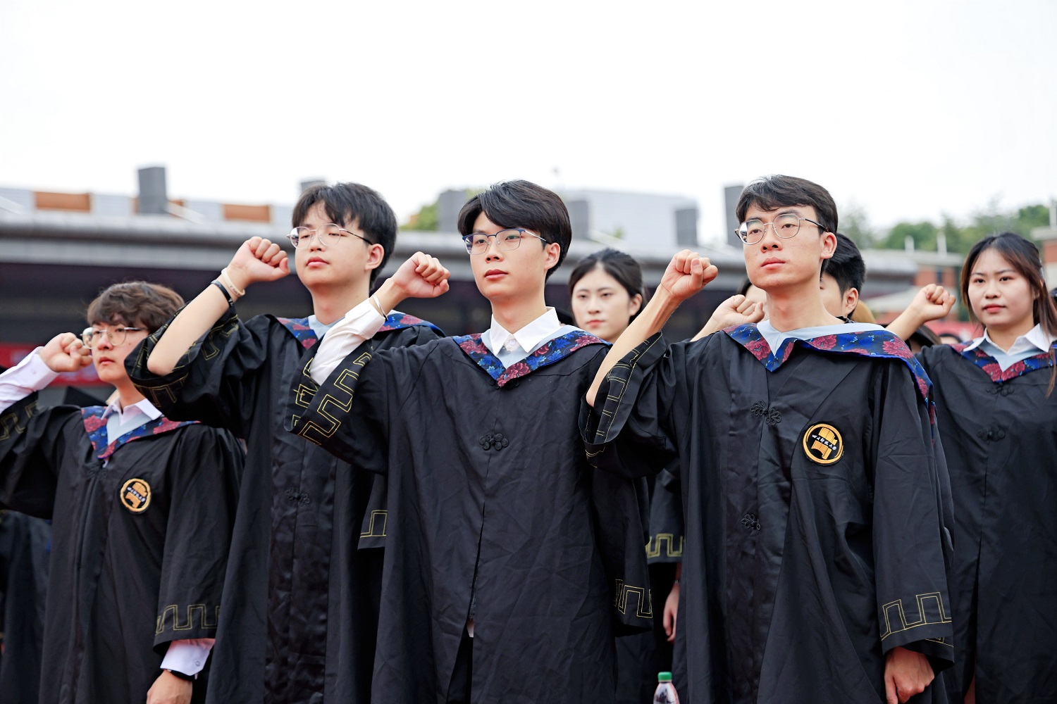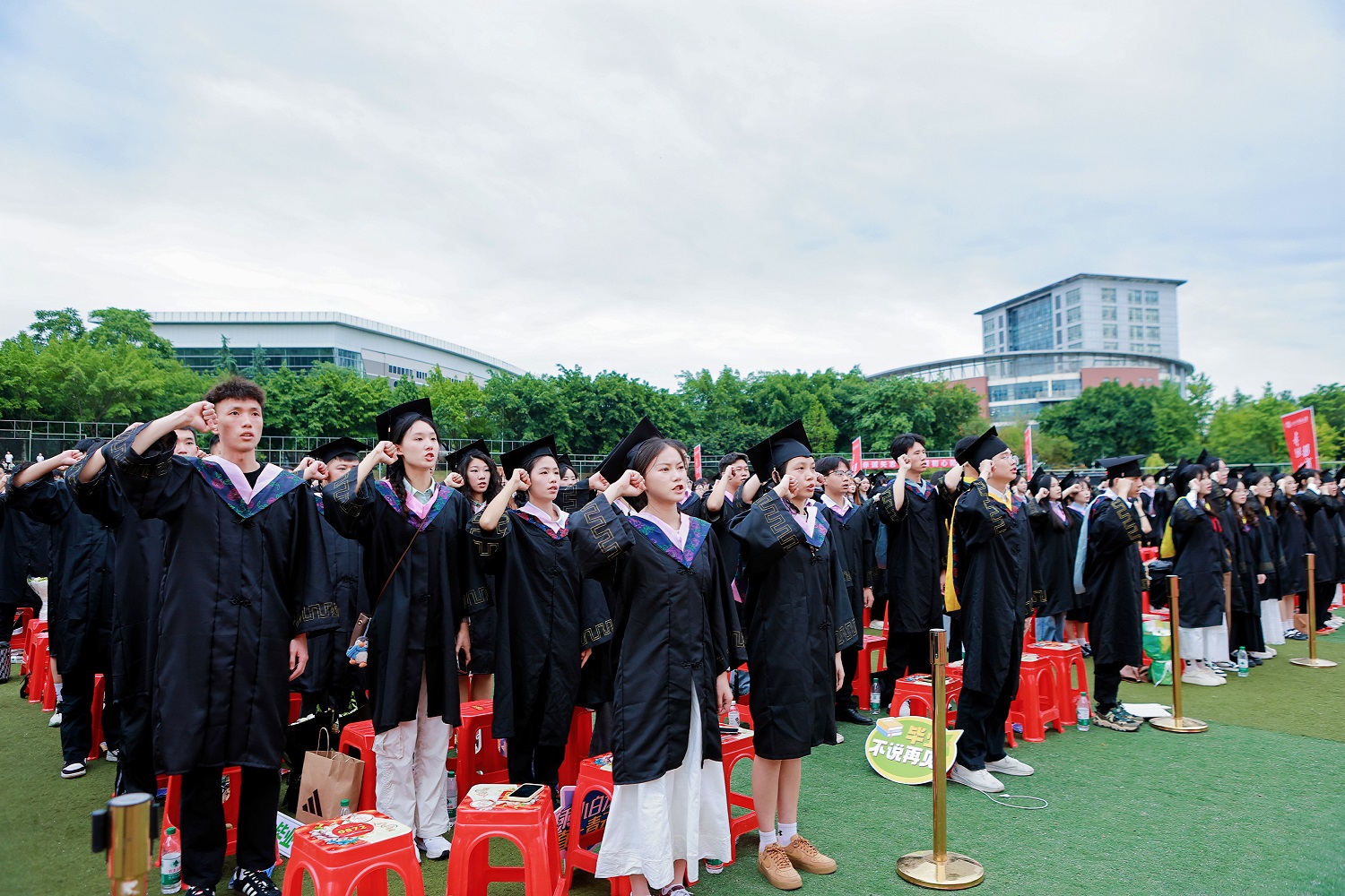 最后,毕业生进行集体宣誓。在嘹亮的校歌声中,毕业典礼暨学位授予仪式圆满落下帷幕。