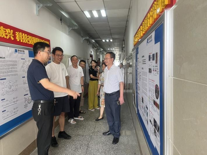 赵国华与教师代表亲切交流,关心暑期科研工作进展情况,了解学院研究生培养目标、毕业要求及目前招生就业情况,并代表学校向他们发放了消暑慰问品。随后,赵国华到实验室亲切慰问正开展科研工作的师生们,详细了解同学们的研究方向和课题进展情况,并勉励师生们产出更多更好的科研成果。