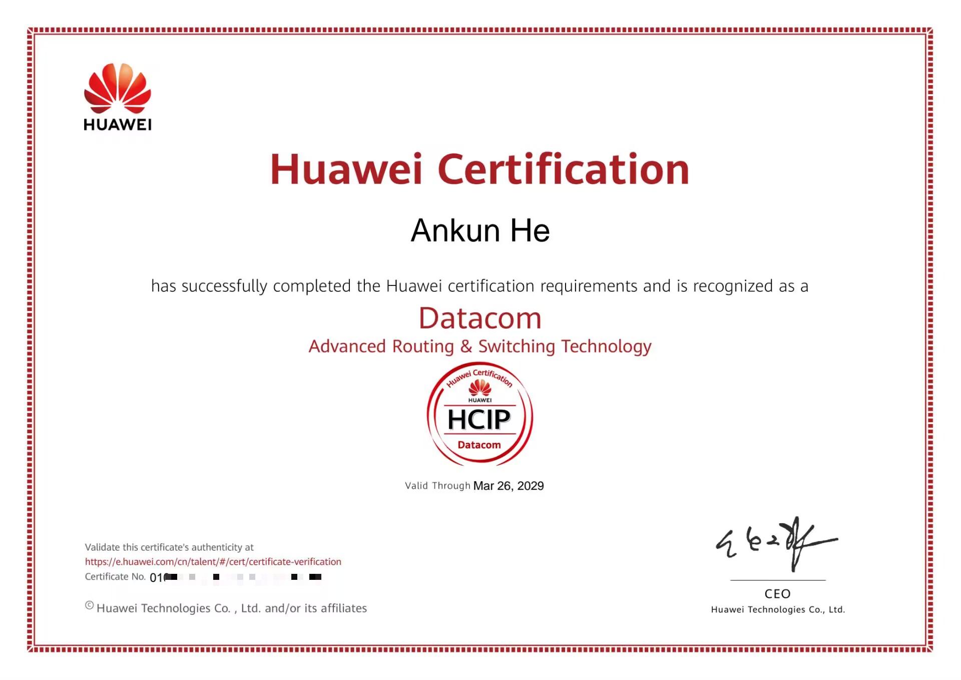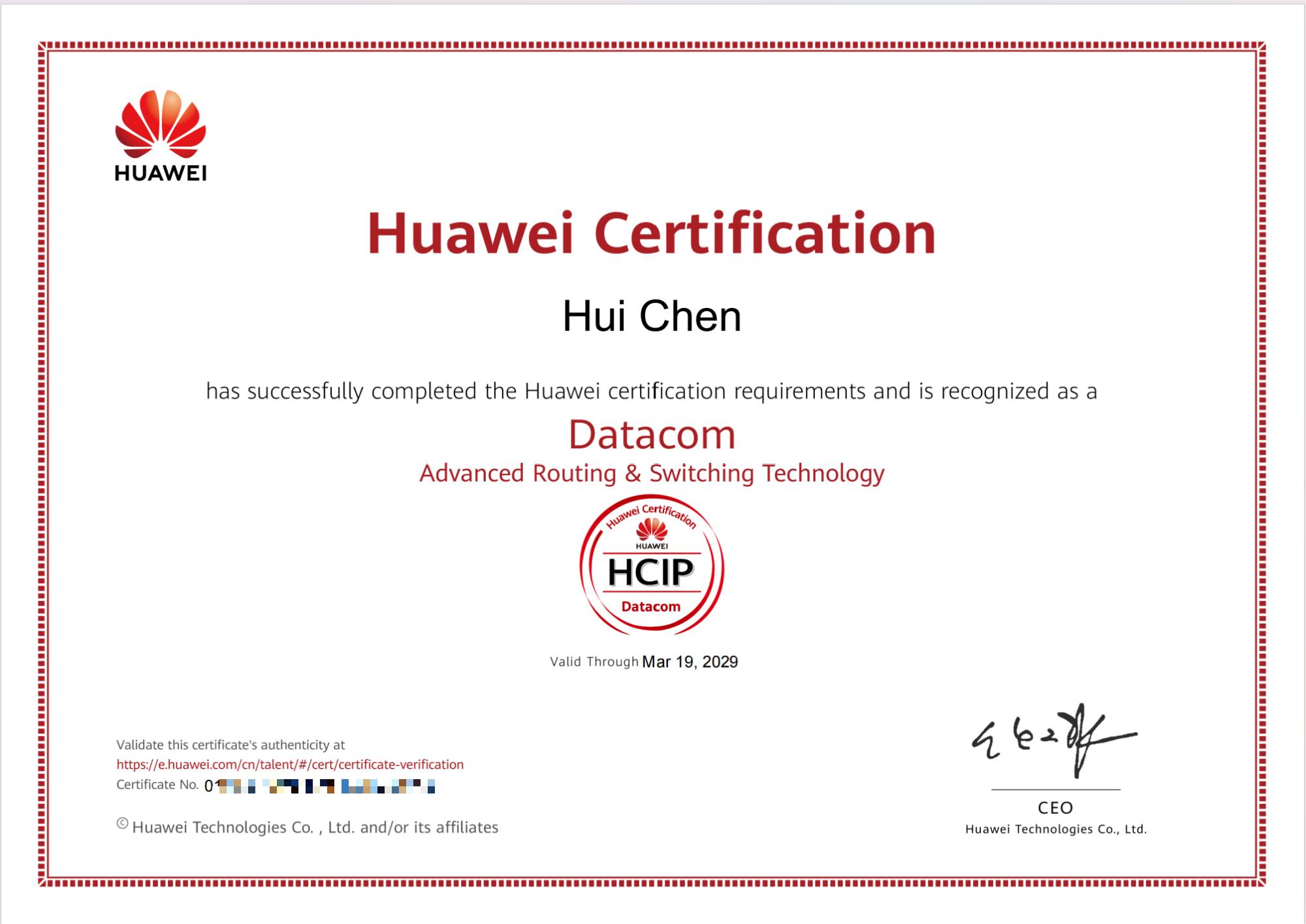 四川托普学院计算机网络技术专业四名学子考取华为HCIP认证