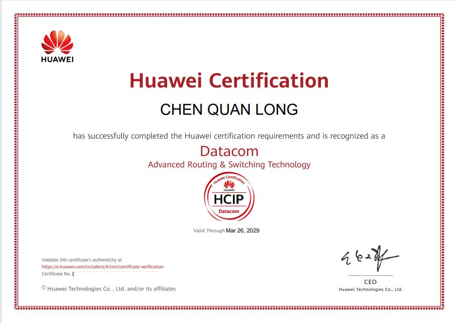 近日,四川托普信息技术职业学院计算机网络技术专业育人工作再结硕果。2024级学生龙尘全、陈辉、杨佐元、何安昆凭借扎实的专业功底与出色的实践能力,顺利通过华为认证ICT高级工程师(HCIP)考试,斩获ICT领域权威网络工程师认证。