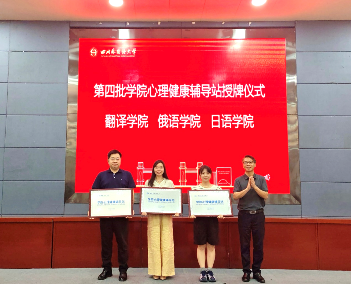 在各类比赛的获奖作品进行现场展示后,常慧明宣读了《关于表彰四川外国语大学第二十一届“5·25”心理健康月获奖集体和个人的决定》,各职能部门负责人、各学院党总支(副)书记为获奖师生代表颁奖。获奖代表国际教育学院谢竞逸、十佳心理委员代表英语学院陈小桠、优秀指导教师代表国际工商管理学院辅导员宋璐分享了参与活动的收获。卢波为第四批学院心理健康辅导站——翻译学院心理健康辅导站、俄语学院心理健康辅导站和日语学院心理健康辅导站授牌。