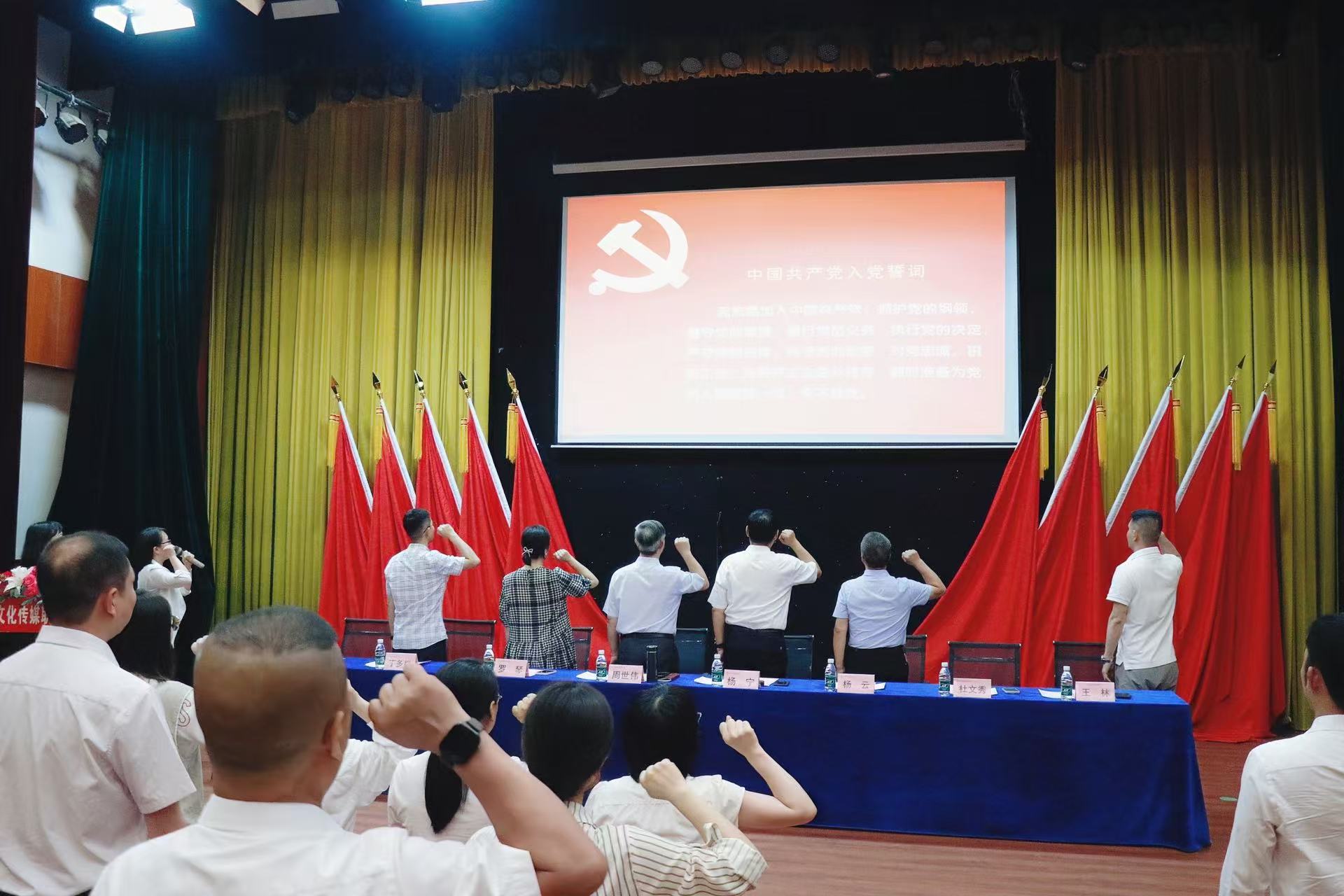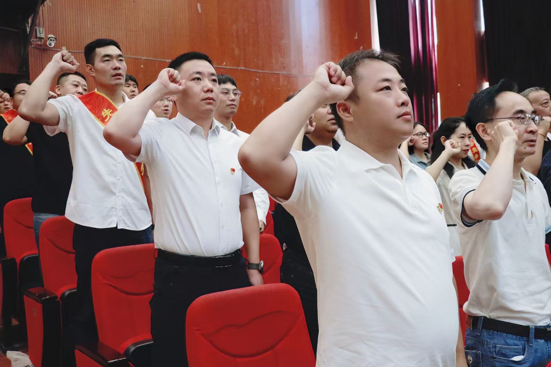 会上宣读了接收预备党员及预备党员转正的批复文件,党委书记周世伟为新党员赠送党章并分发党徽。在领誓人杜文秀带领下,全体新党员面向党旗庄严宣誓,同时老党员重温入党誓词。