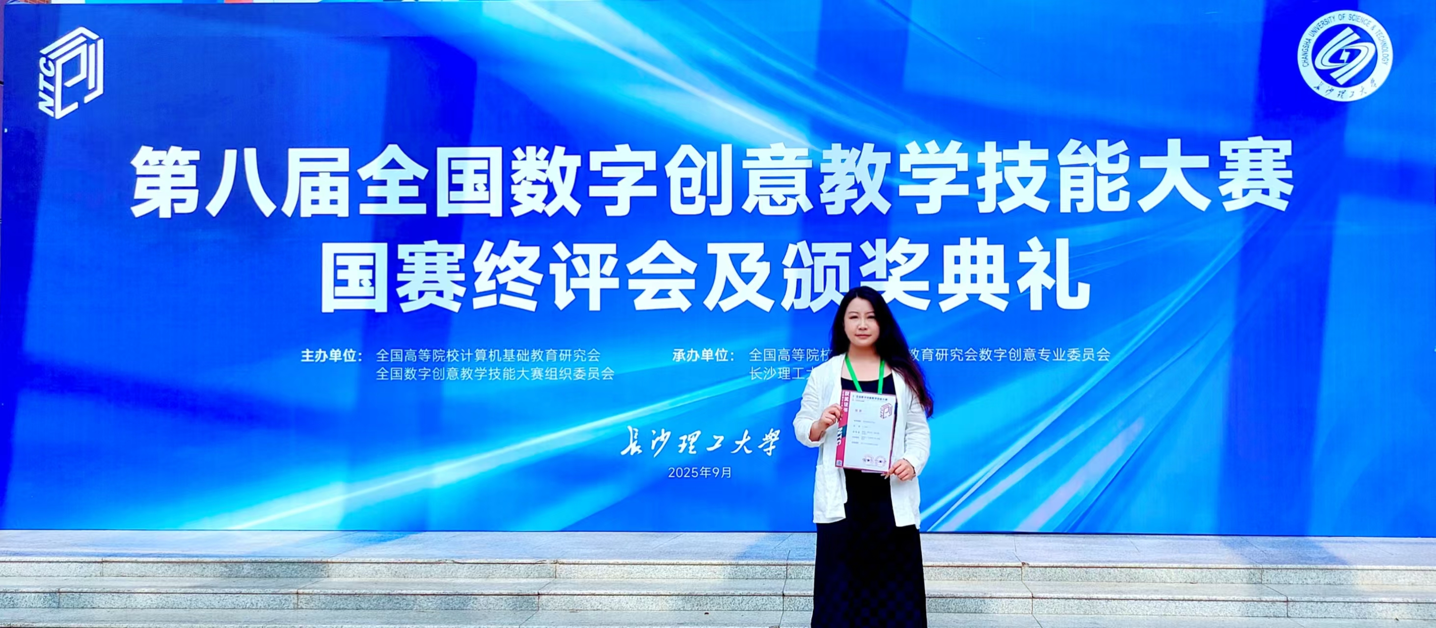 9月27日至28日,第八届全国数字创意教学技能大赛全国总决赛在湖南长沙理工大学举行。本届赛事竞争激烈,共收到来自全国574所高校的4581件作品,经严格筛选,仅695件作品入围国赛。在作品展示与答辩环节,韩嫣老师团队沉着冷静,清晰阐述了作品的创作理念、技术实现与教学融合思路,面对评委提问对答如流,充分体现了扎实的专业素养与团队协作能力。