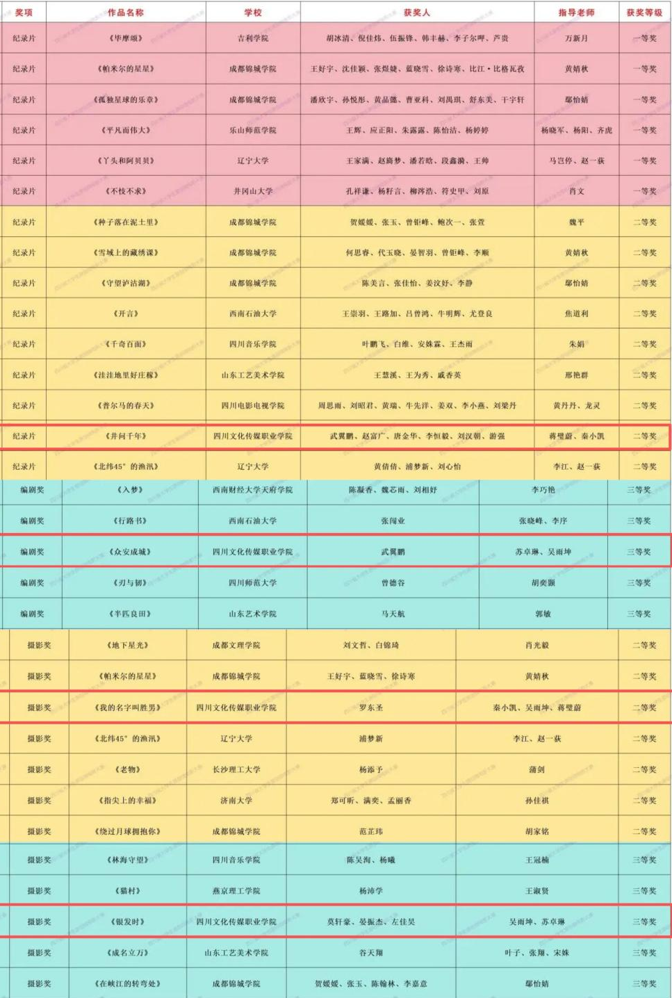 在学校报送的作品中,多部作品凭借鲜明的主题立意与精湛的创作技法获得评委认可。其中,纪录片《井问千年》获纪录片类二等奖;微电影《我的名字叫胜男》获摄影类二等奖;纪录片《银发时》获摄影类三等奖;微电影《众安成城》获编剧类三等奖。这些成绩集中体现了学校影视编导专业在实践教学与创作引导上的持续突破。