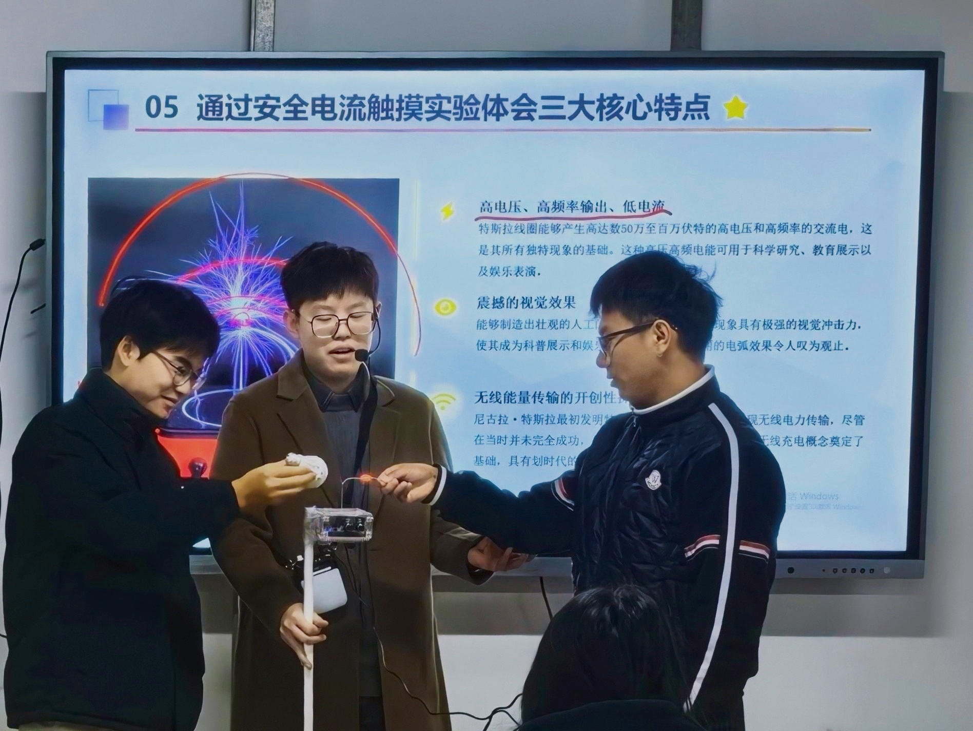 通过“多媒体课件+实物原理图拆解”的方式,逐步拆解特斯拉线圈的核心结构与原理: