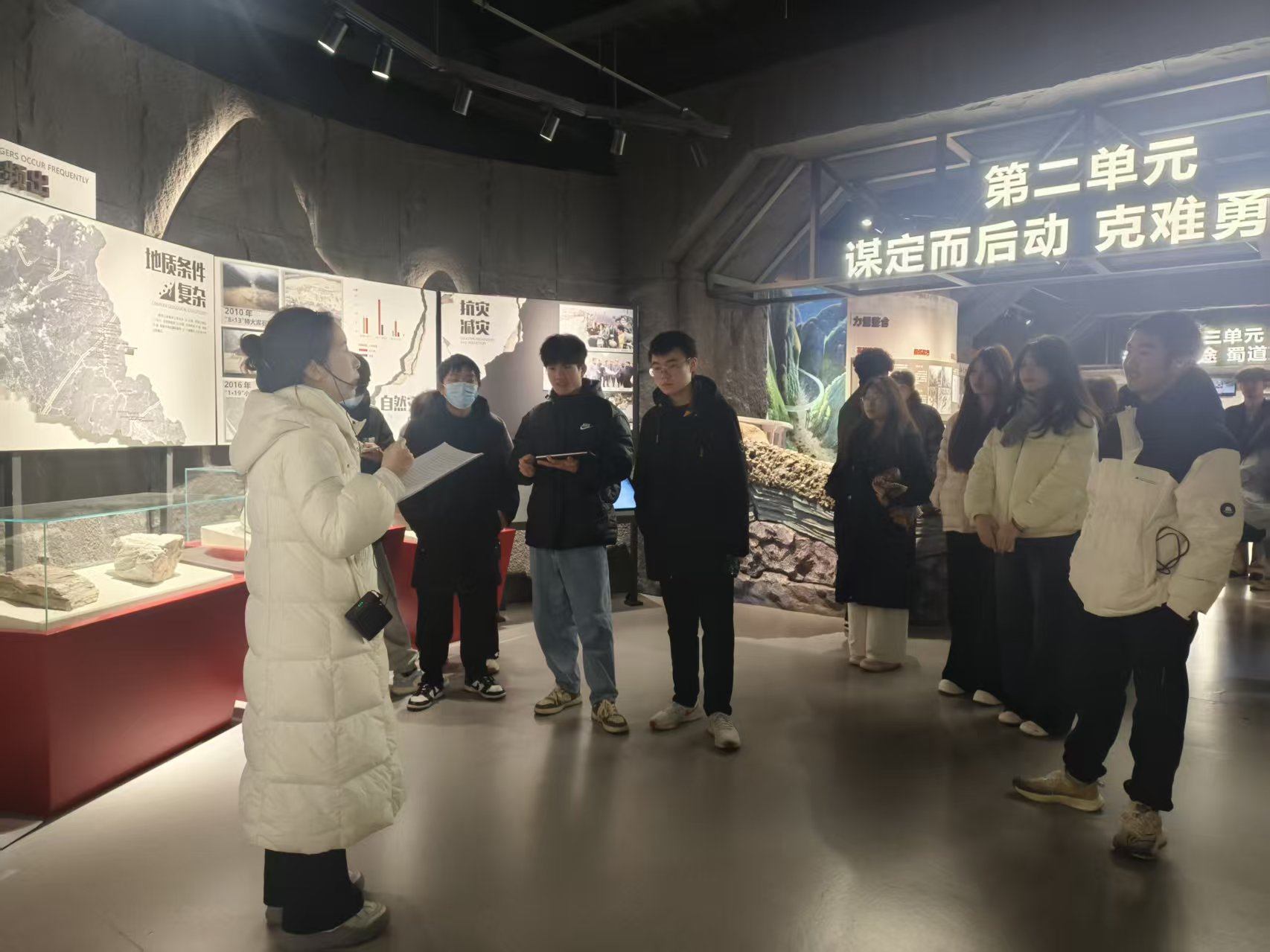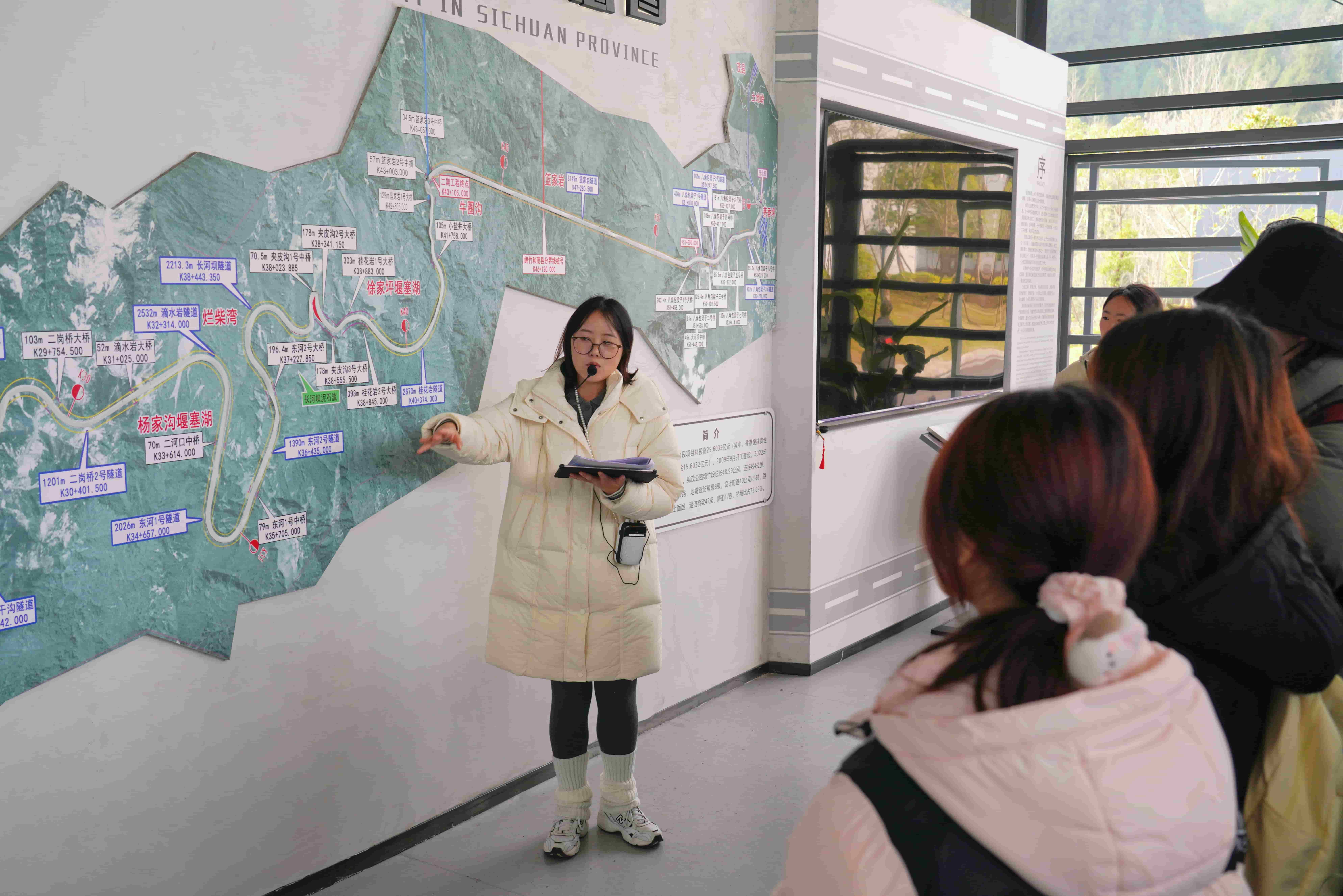 在参观完文家沟泥石流治理工程后,师生一行转赴绵茂公路展馆。通过历史影像、实物展陈与带队老师的生动讲解,大家系统了解了这条“云端天路”的建设历程。