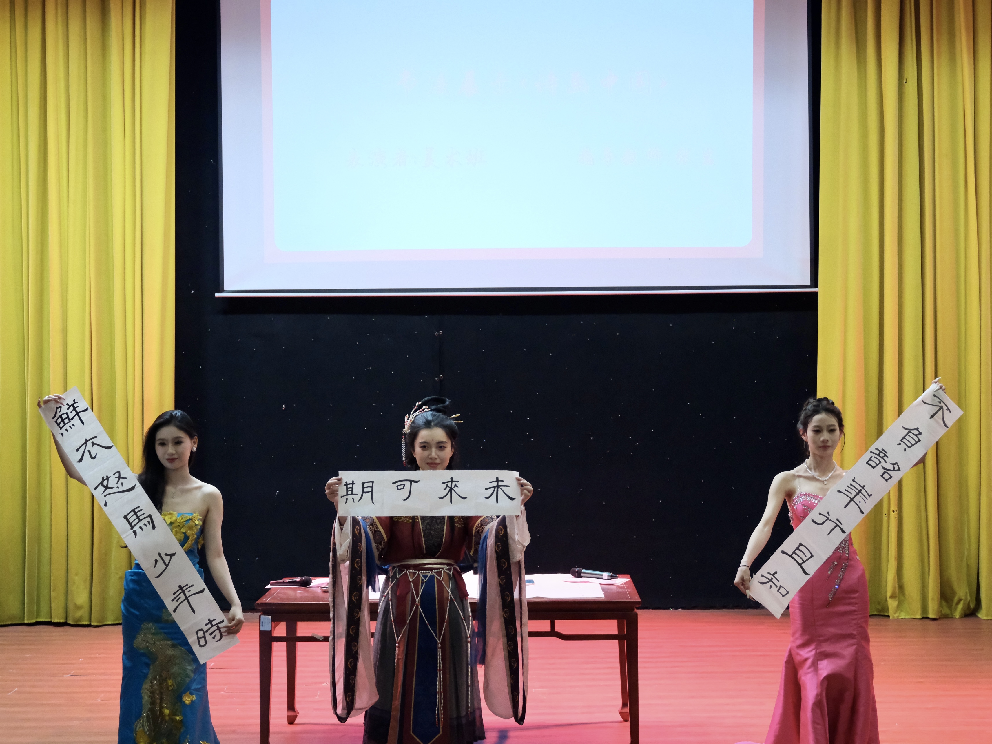 舞台上,双人舞演员默契协作,以流畅舞姿诉说同窗情谊与成长历程;群舞队列整齐、动作灵动,展现出昂扬向上的团队风貌;表演唱与合唱节目旋律动人,或激昂或婉转,唱响对未来的憧憬;歌伴舞则将声乐与舞蹈巧妙融合,带来视听双重享受;书法展示环节笔走龙蛇,尽显传统文化底蕴,为整场演出增添人文气息。
