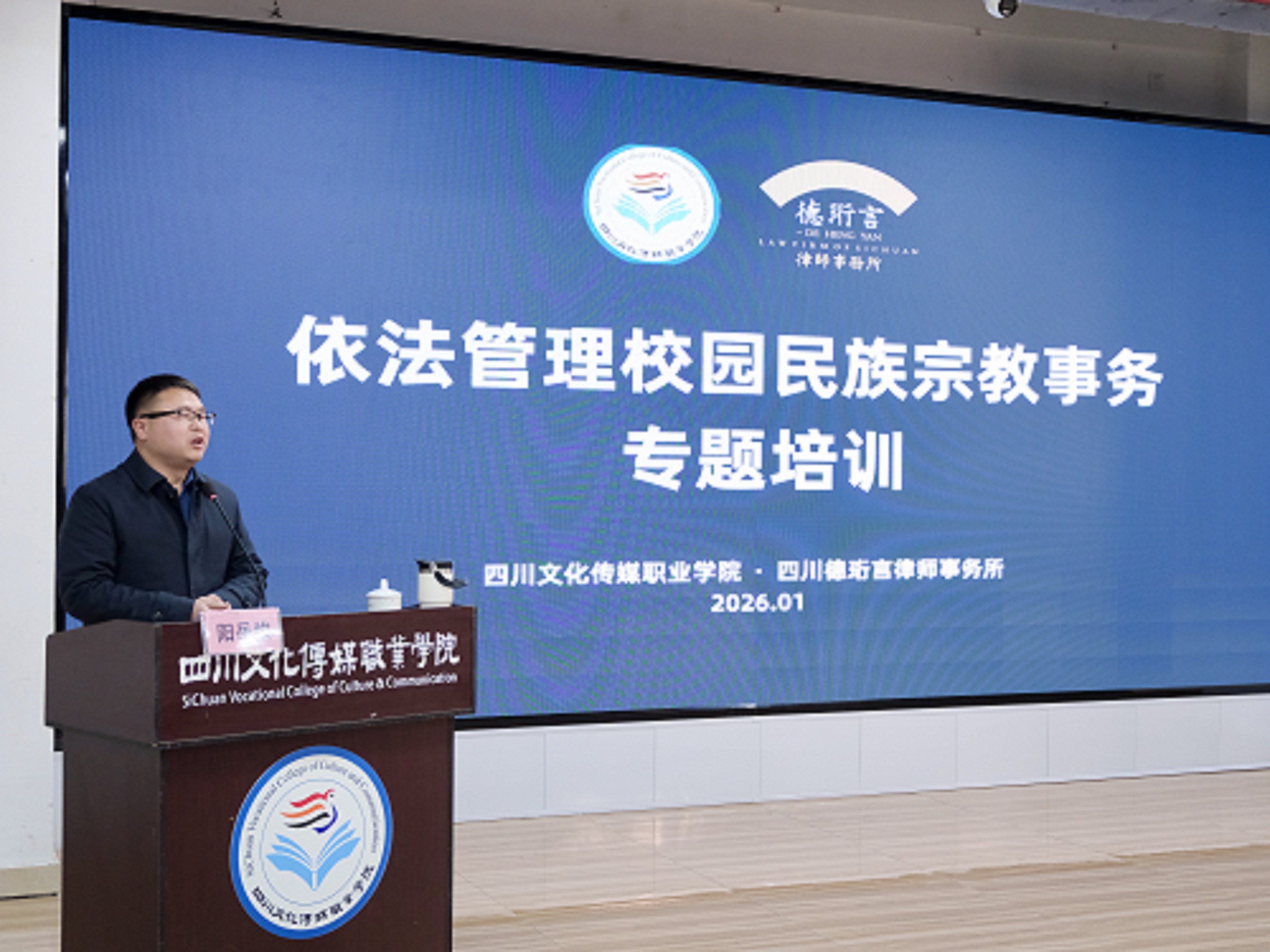 此次培训会特邀四川德珩言律师事务所党支部书记、副主任阳岳峻以《依法管理校园民族宗教事务》为题开展辅导讲座。