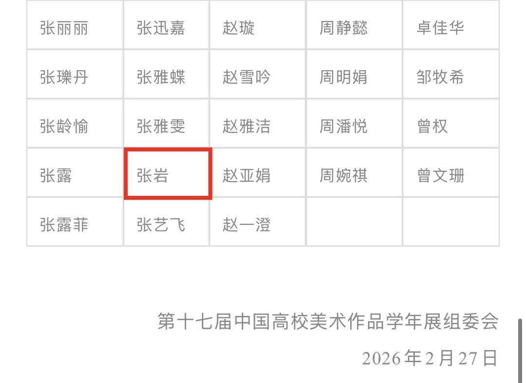 据悉,本次获奖与入选作品将正式收录出版于《第十七届中国高校美术作品学年展作品集》,并被中国知网全文收录检索,实现学术成果权威留存与广泛传播。