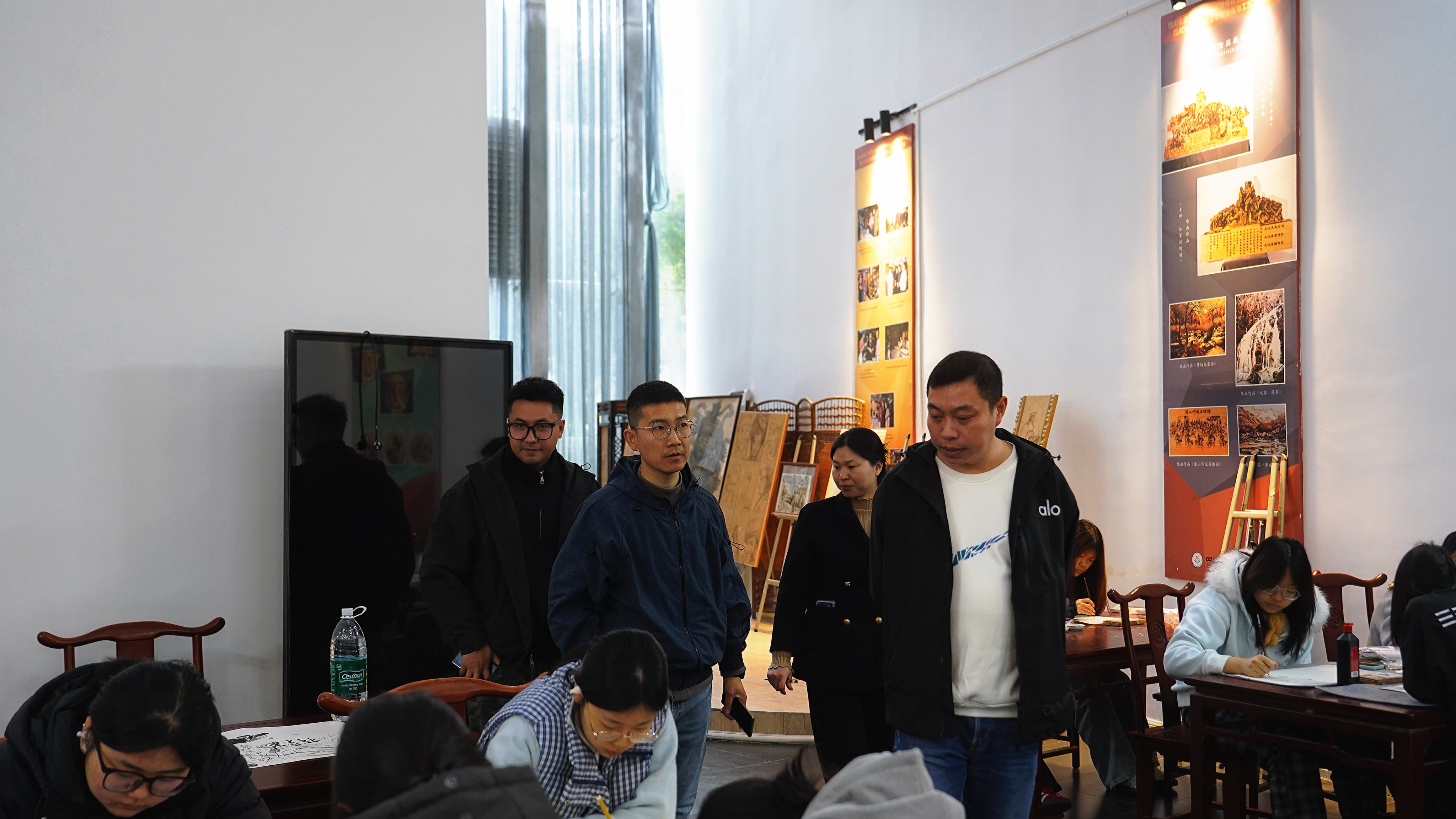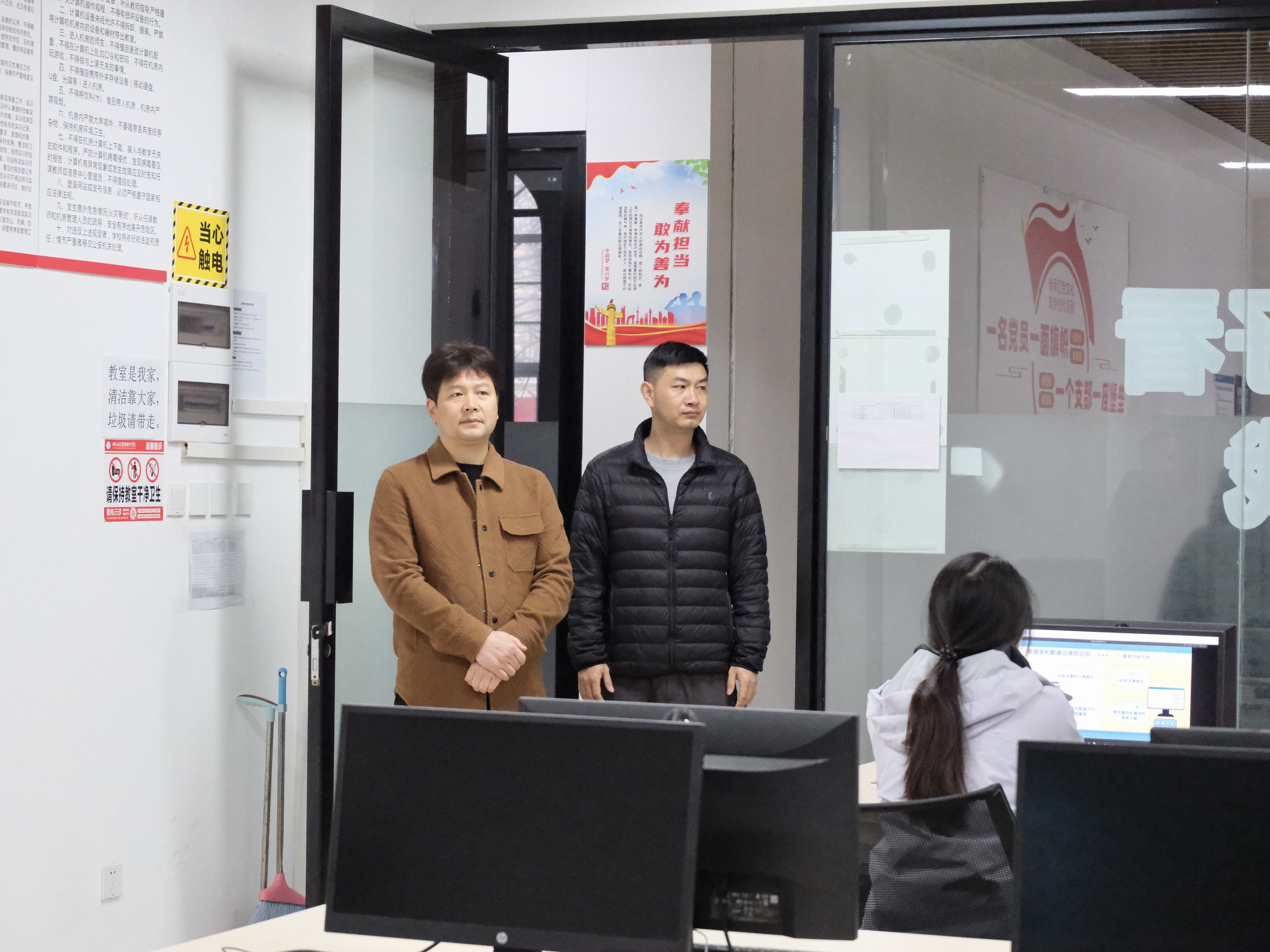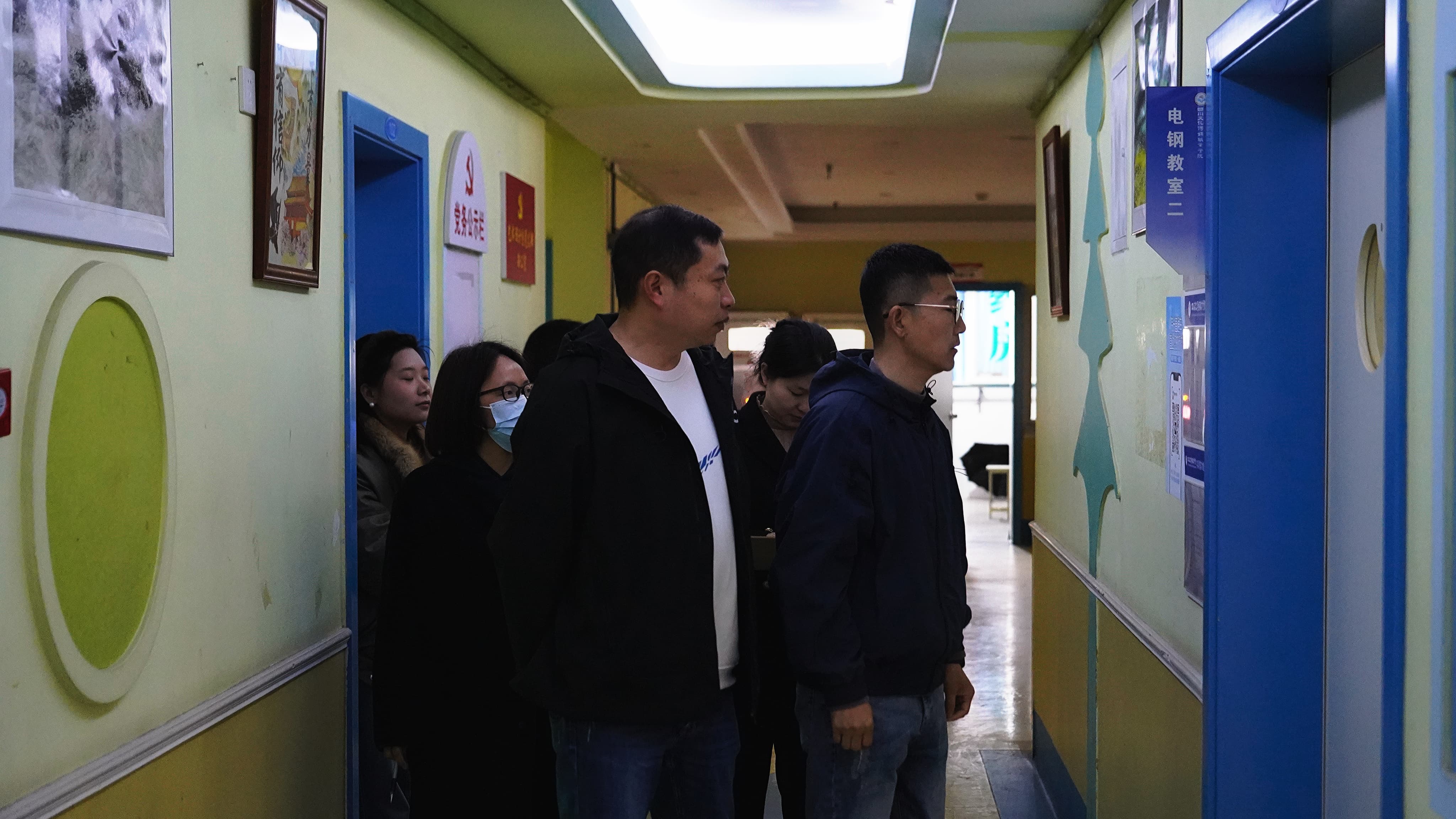 校领导们走进一间间教室