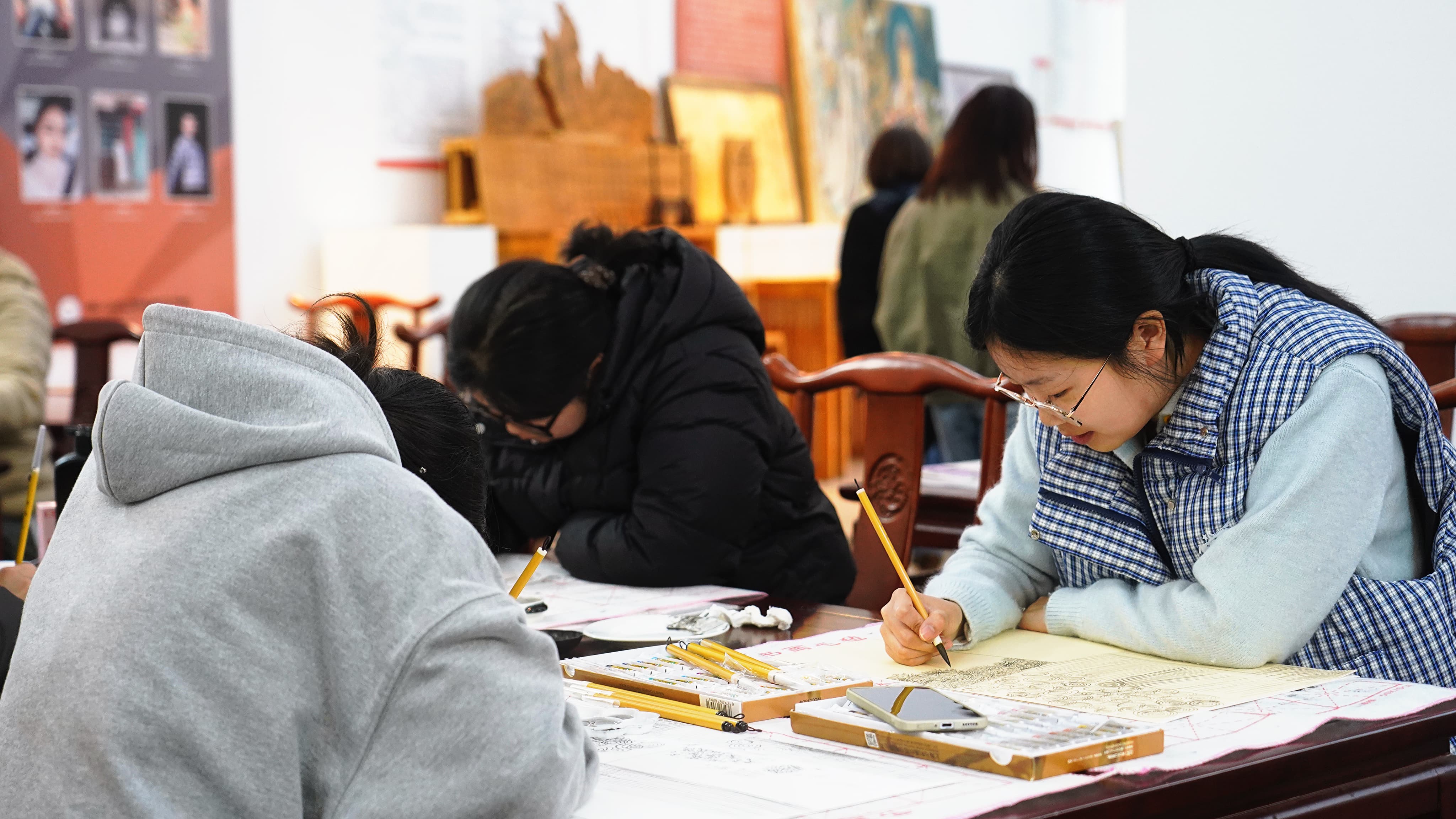 画笔在纸上沙沙作响