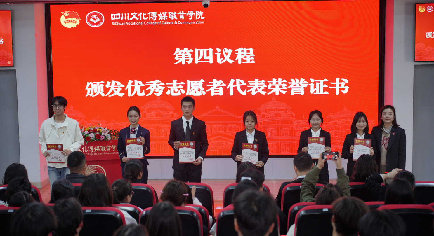 在热烈的掌声中,与会领导为优秀志愿者代表颁发荣誉证书,获奖代表们手捧证书,脸上洋溢着自豪的笑容。