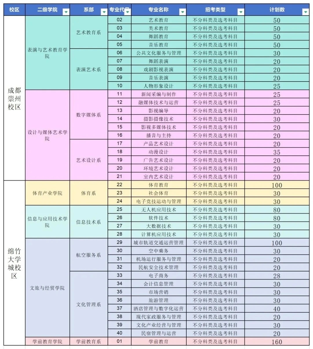 专业代码+专业表+计划数