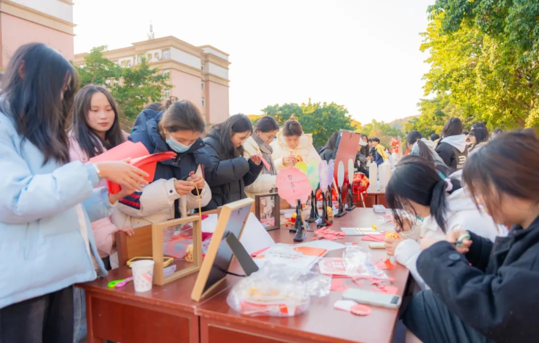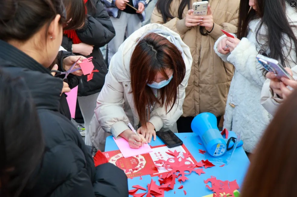手工DIY区域,同学们倾注对新年的美好祈愿,脸庞洋溢着专注与喜悦,霎时间,一幅幅精美窗花、福字相继诞生,同学们互相品鉴,竞相欣赏,许多同学还将作品带回宿舍张贴,以此迎接新年。这一刻,不同学院与年级的同学们因传统文化体验紧密相连,喜悦与成就感涌上心头。这不仅是传统文化的体验,更是心灵的洗礼,让同学们在紧张学习中找到归属感与幸福感。