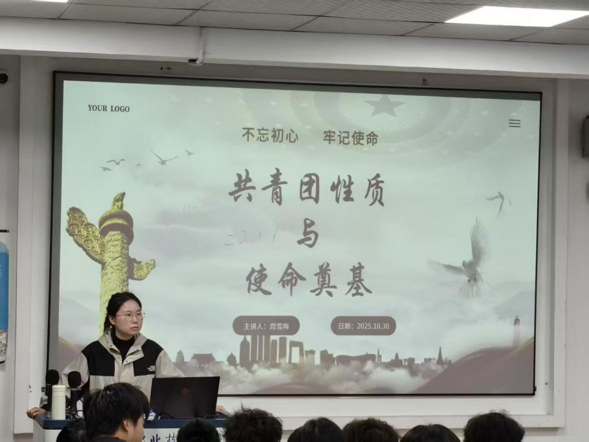2025年10月30日下午,现代制造学院在“东坝社区”1101教室开展“共青团性质与使命奠基”主题团课。