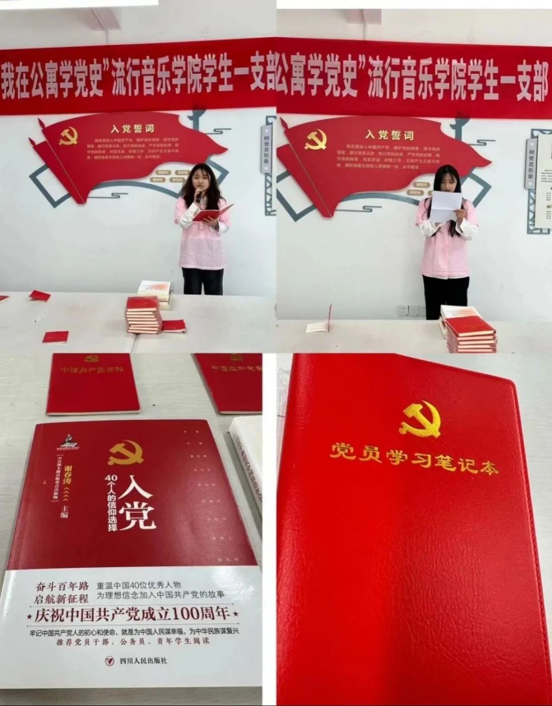 4月3日流行音乐学院学生第一党支部全体学生党员和入党积极分子在学生公寓党员活动室开展“我在公寓学党史”主题党日活动。学生党支部书记韩叶同志带领同学们学习了党章,号召大家以百年党史为鉴,传承红色基因,赓续奋斗血脉,秉承共产党人的坚守和情怀,充分发挥学生党员的先进性和模范带头作用。