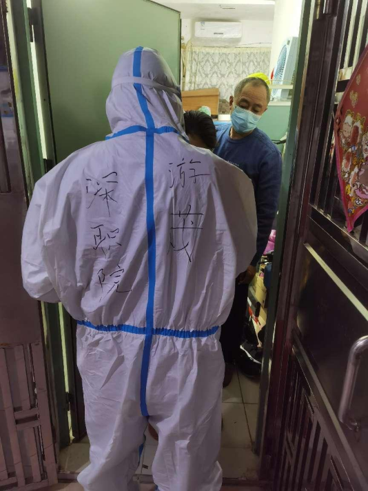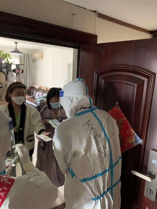 在海滨社区伟俊阁6楼,当游茂在核查信息的时候得知一位老人家几天没做核酸是因为腿脚不方便后,他一方面建议老人家要做好防护,一方面联系社区工作人员上门为其做核酸。在另一户人家,在得知一位医疗单位的护士因为单位停工没发工资急需其他兼职时,游茂也及时联系认识的医疗朋友为她推送了工作信息。疫情对于普通人的生活冲击还是比较大的,在做好疫情防控的同时,游茂总是能从对方的角度着眼,力所能及的解决住户的问题。