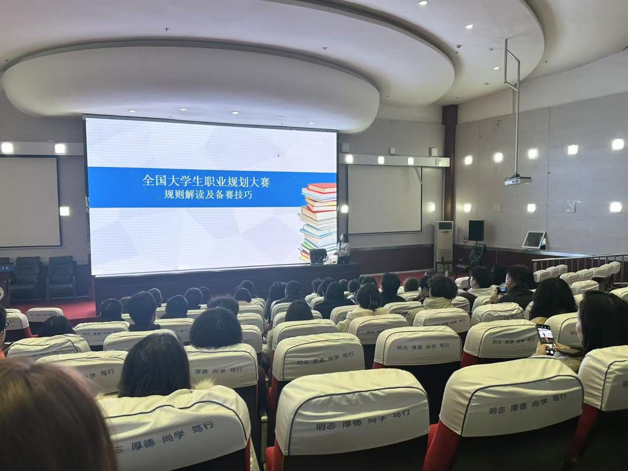 12月4日下午,第三届全国大学生职业规划大赛第一期培训讲座在我校河东校区学术报告厅成功举行,本期讲座围绕赛事规则解读与生涯规划报告撰写指导等核心内容进行。本次讲座活动由通识教育学院主办,桃李社区、大学生创新创业俱乐部、高职学生综合素质训育普及基地联合承办,讲座吸引了全校100余名有参赛意向的学生及指导教师参加。